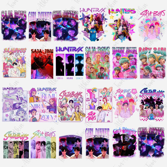 Huntrix and saja boys bundle png, cool fantasy squad design bundle png, trending manwha bundle png