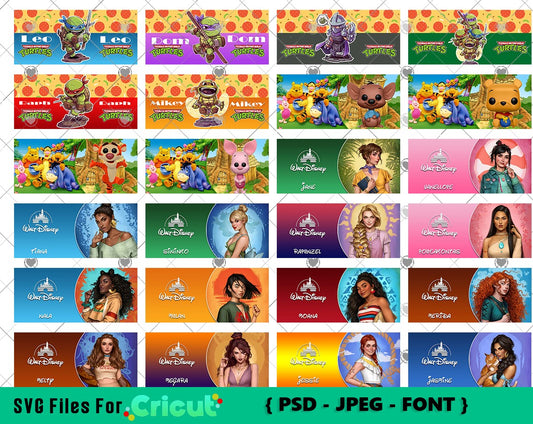 12 Digital Paper and clipart bundle, Moana, Frozen, Pocoyo, Minnie baby, Minions, Mickey baby