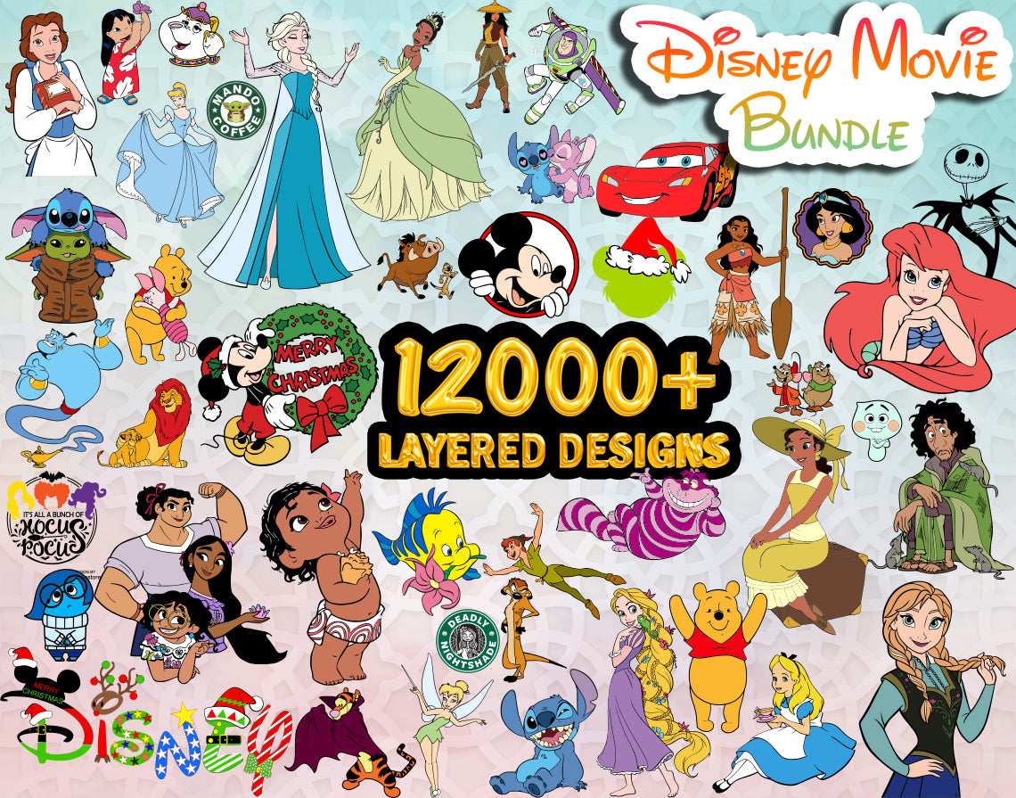 12000+ Layered Princess SVG Bundle for Cricut Files, Frozen, Moana, Mickey, Encanto, Ariel, Elsa, Tangled, Stitch, Toy Story, Pooh SVG Files
