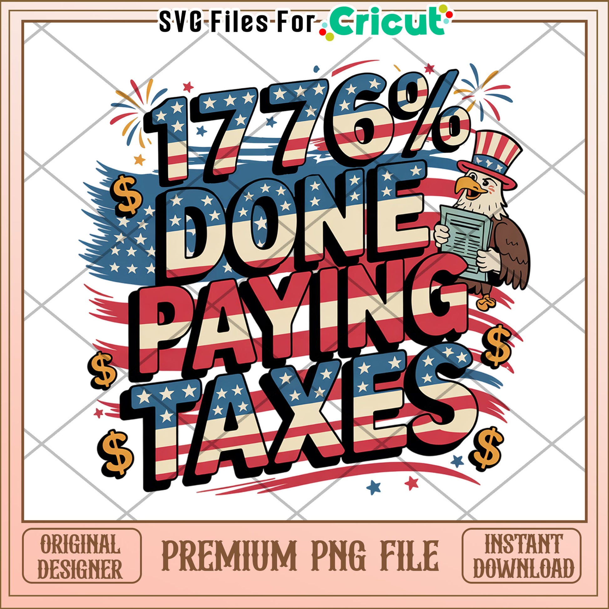 1776 Done Paying Taxes PNG Design is part of our Trending collection, showcasing the latest and most popular designs for your creative projects! Whether you're making t-shirts, mugs, stickers, or digital art, our high-quality PNG files are perfect for Cricut, sublimation, and other design needs. From viral memes and pop culture icons to seasonal themes and aesthetic graphics, our collection is constantly updated with fresh, eye-catching designs. Each PNG has a transparent background for seamless customization.