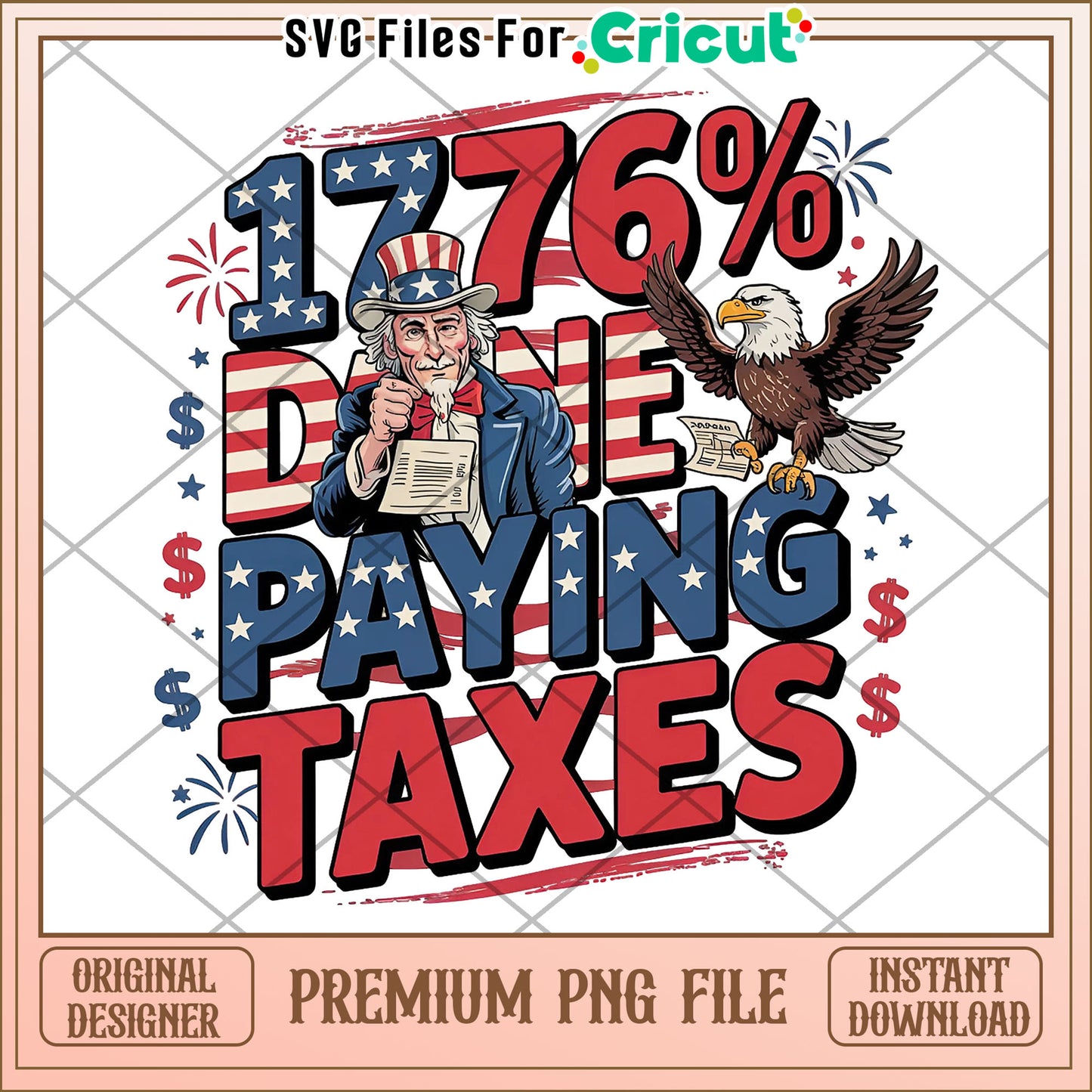 1776 Done Paying Taxes PNG Image is part of our Trending collection, showcasing the latest and most popular designs for your creative projects! Whether you're making t-shirts, mugs, stickers, or digital art, our high-quality PNG files are perfect for Cricut, sublimation, and other design needs. From viral memes and pop culture icons to seasonal themes and aesthetic graphics, our collection is constantly updated with fresh, eye-catching designs. Each PNG has a transparent background for seamless customization.