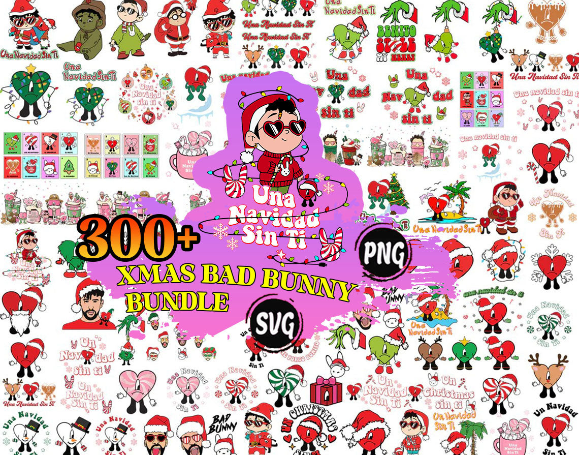 300+ Bunny Bad Bundle Layered SVG, Bunny Bad Christmas, Xmas svg, latin svg, Benito svg, yhlqmdlg svg, Una Navidad Sin Ti Bunny Bad Xmas