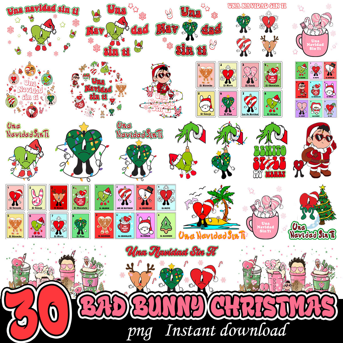 Bad Bunny Christmas PNG Bundle, Bad bunny Merry Christmas bundle