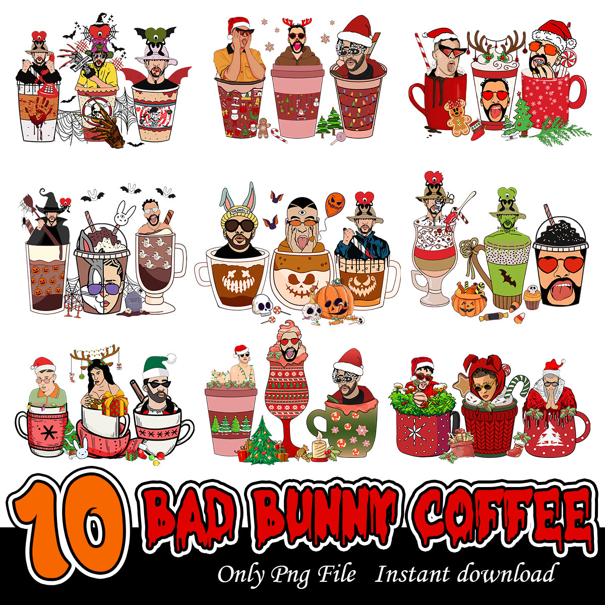 Bad bunny coffee PNG bundle, Bad bunny coffee art bundle