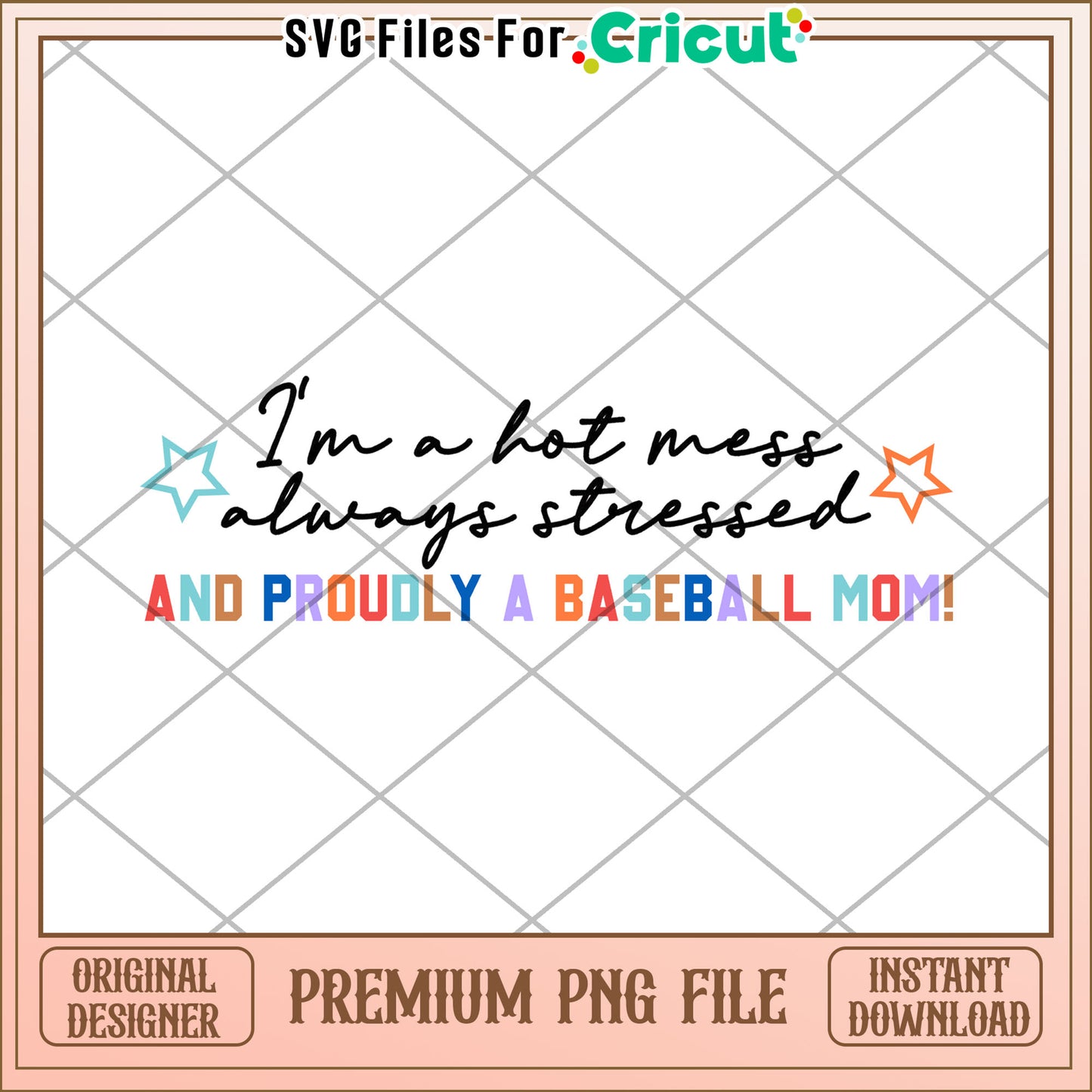Baseball Mom PNG Hot Mess Stressed Design is part of our beautiful Mother's Day collection! With high-quality designs featuring transparent backgrounds, this collection is perfect for creating heartfelt gifts and decorations. Choose from elegant floral motifs, touching quotes, and charming graphics that capture the essence of Mother's Day. Whether you're creating custom t-shirts, mugs, cards, or home decor, these versatile PNG files make it easy to design something special. Compatible with Cricut, Silhouette, and other craft tools, our Mother's Day PNG collection helps you show your appreciation with style and creativity.