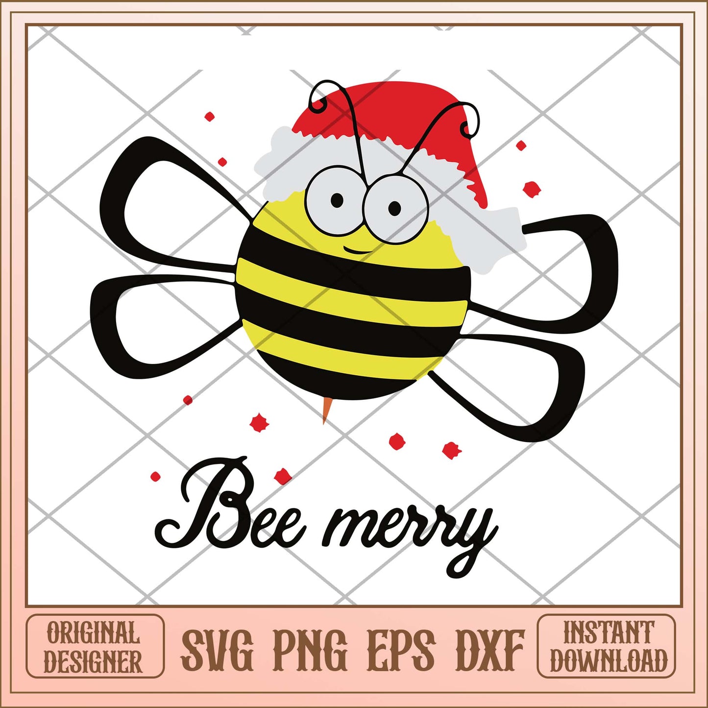 Bee merry svg, Merry Christmas funny cute bee svg, Bee Santa hat svg