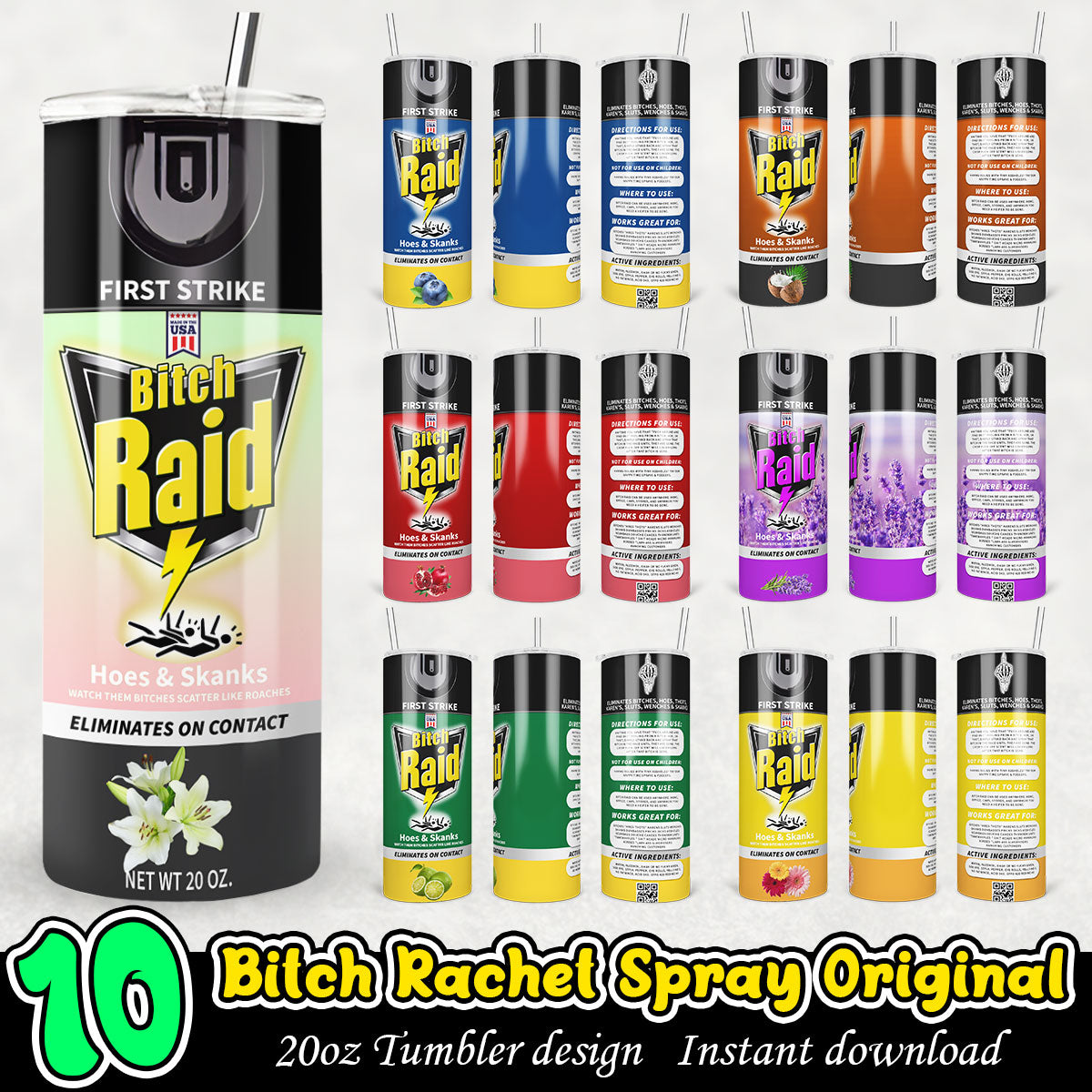 Bitch Rachet Raid Spray Original Png Tumbler, Bitch raid 20oz tumbler