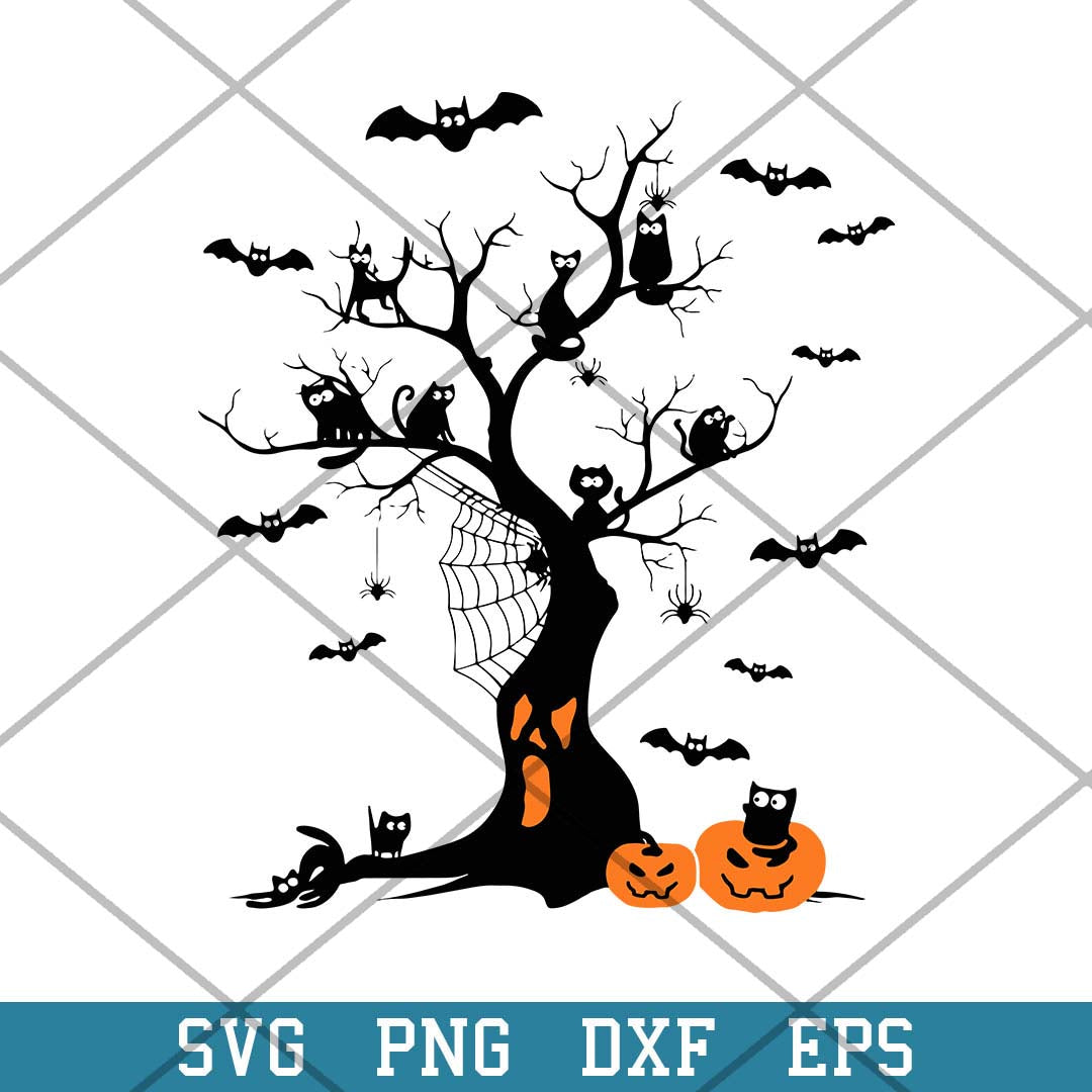 Black Cat Halloween Tree Svg, Black Cat Halloween Svg-Svgfilesforcricut