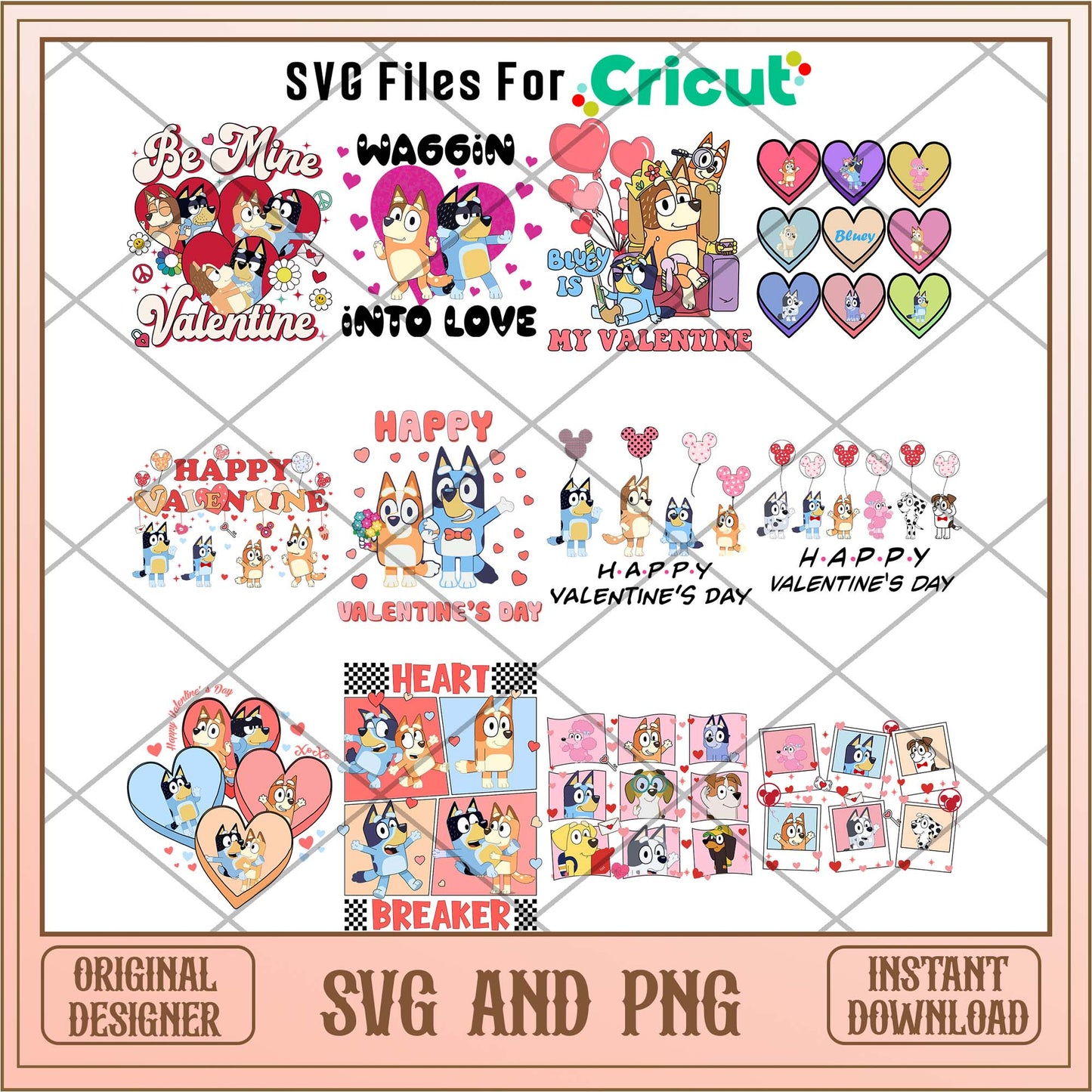 Get ready to add a burst of fun to your birthday celebrations with our Bluey bingo cartoon valentines day png bundle! This digital download features high-resolution designs ideal for personalizing birthday decorations, apparel, and more.