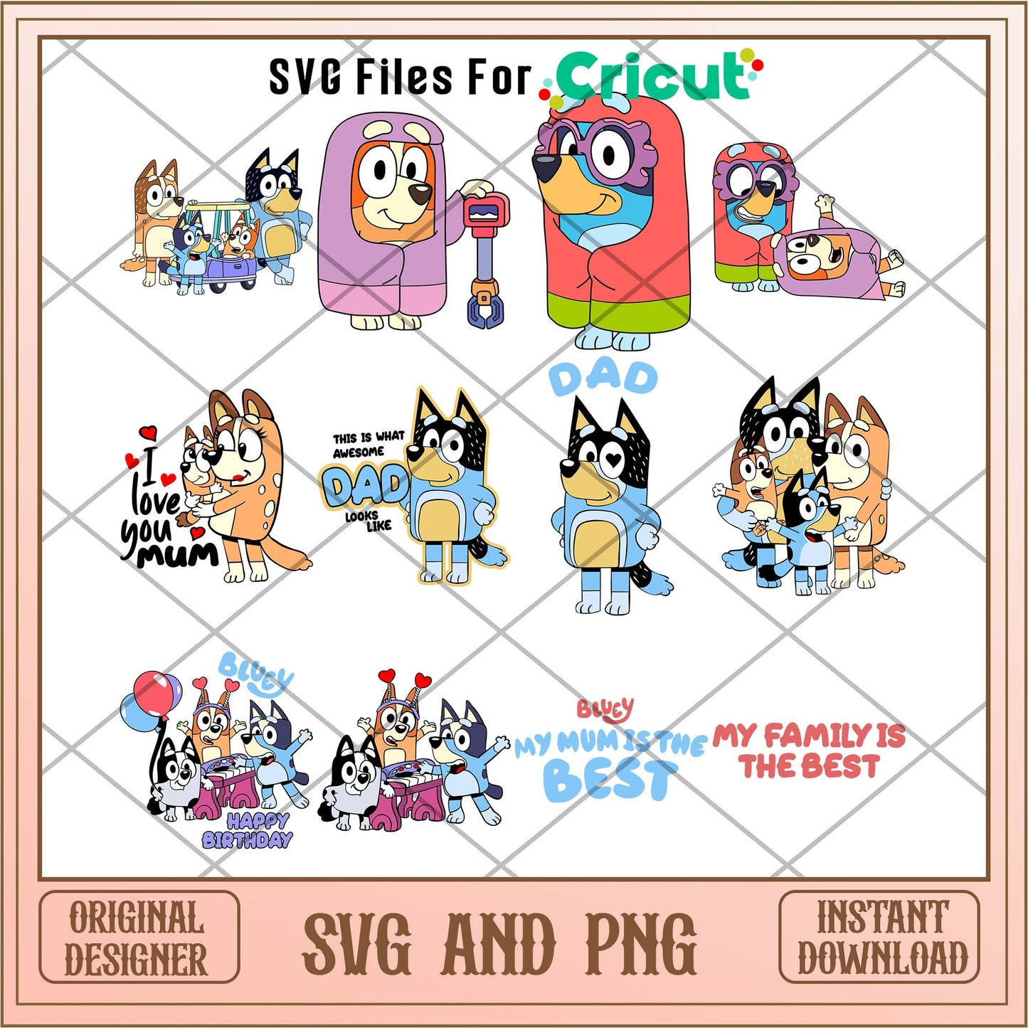 Get ready to add a burst of fun to your birthday celebrations with our Bluey cartoon best family svg bundle! This digital download features high-resolution designs ideal for personalizing birthday decorations, apparel, and more.