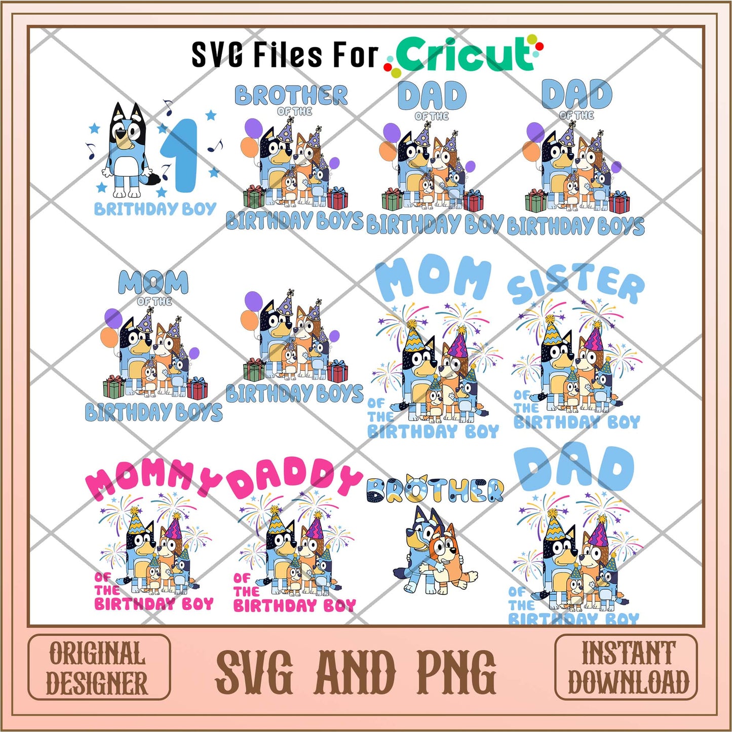 Get ready to add a burst of fun to your birthday celebrations with our Bluey cartoon birthday boy svg bundle! This digital download features high-resolution designs ideal for personalizing birthday decorations, apparel, and more.
