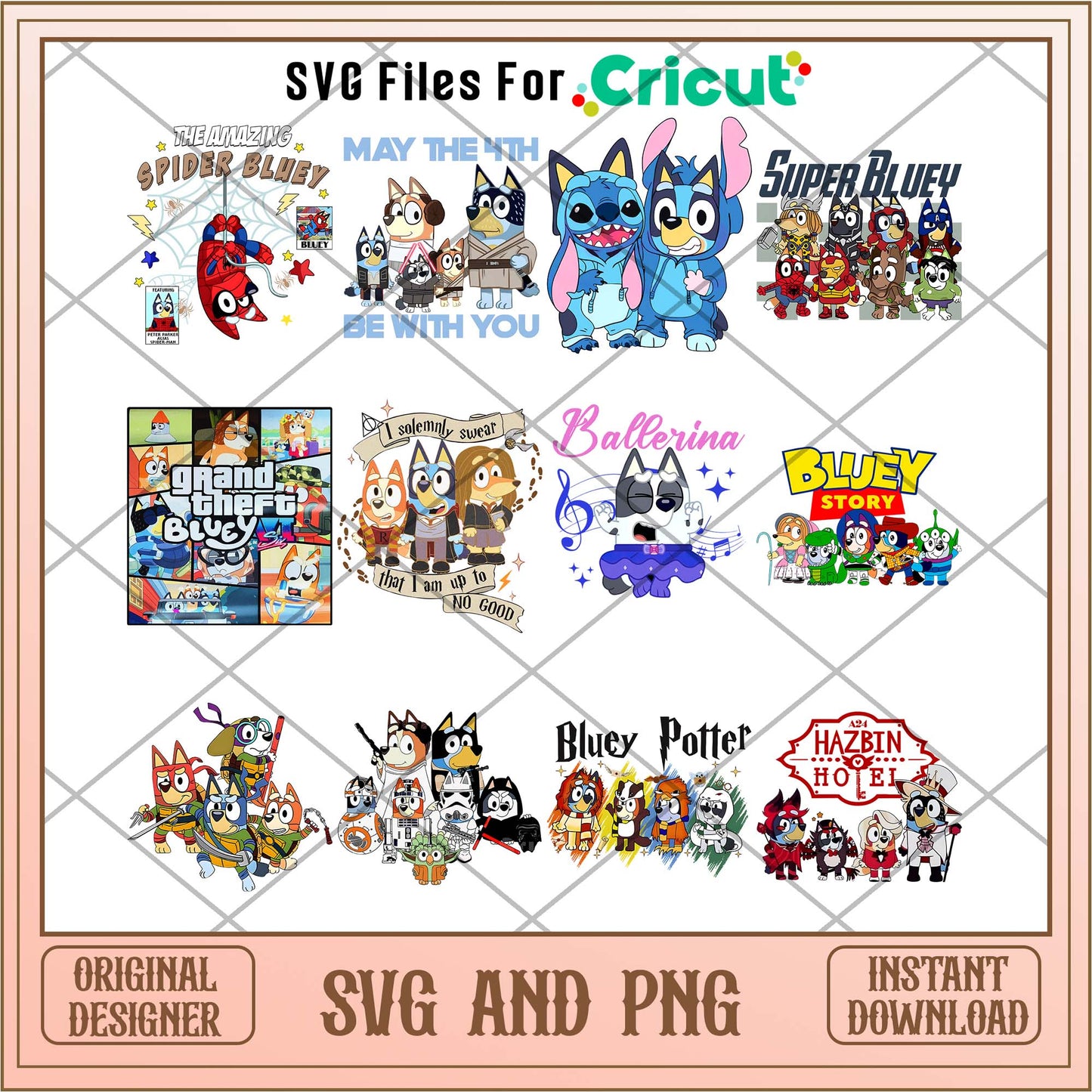 Get ready to add a burst of fun to your birthday celebrations with our Bluey cartoon characters movies cosplay png bundle! This digital download features high-resolution designs ideal for personalizing birthday decorations, apparel, and more.