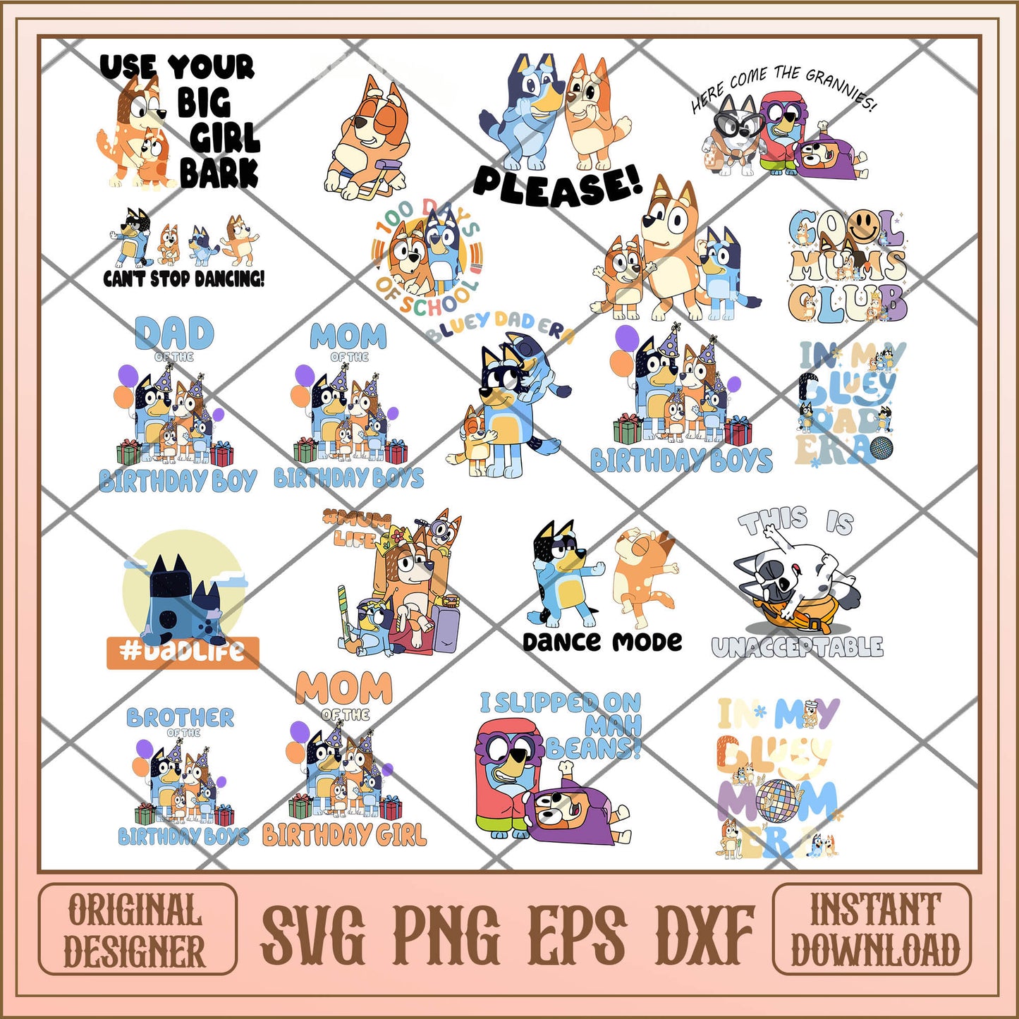 Get ready to add a burst of fun to your birthday celebrations with our Bluey family cartoon svg bundle! This digital download features high-resolution designs ideal for personalizing birthday decorations, apparel, and more.