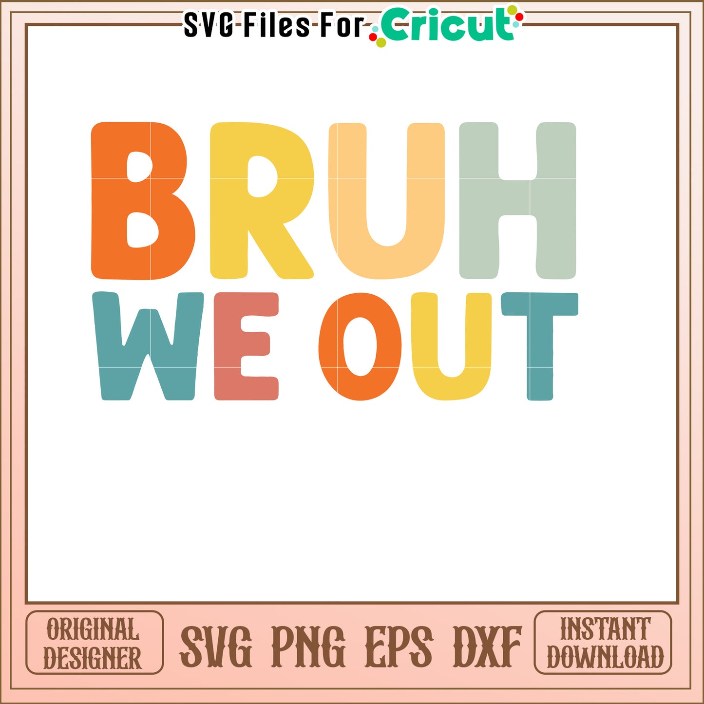 Bruh We Out Teachers SVG Cut File is part of our cartoon collection, adding a playful touch to any craft project. Featuring a variety of characters, animals, and quirky themes, these SVGs are perfect for Cricut, Silhouette, and other cutting machines. Whether you're making kids' t-shirts, birthday party decorations, stickers, or digital illustrations, animated SVG files will bring your ideas to life with vibrant detail. These scalable vector graphics maintain quality at any size, allowing you to create high-quality prints on everything from cards to wall hangings.