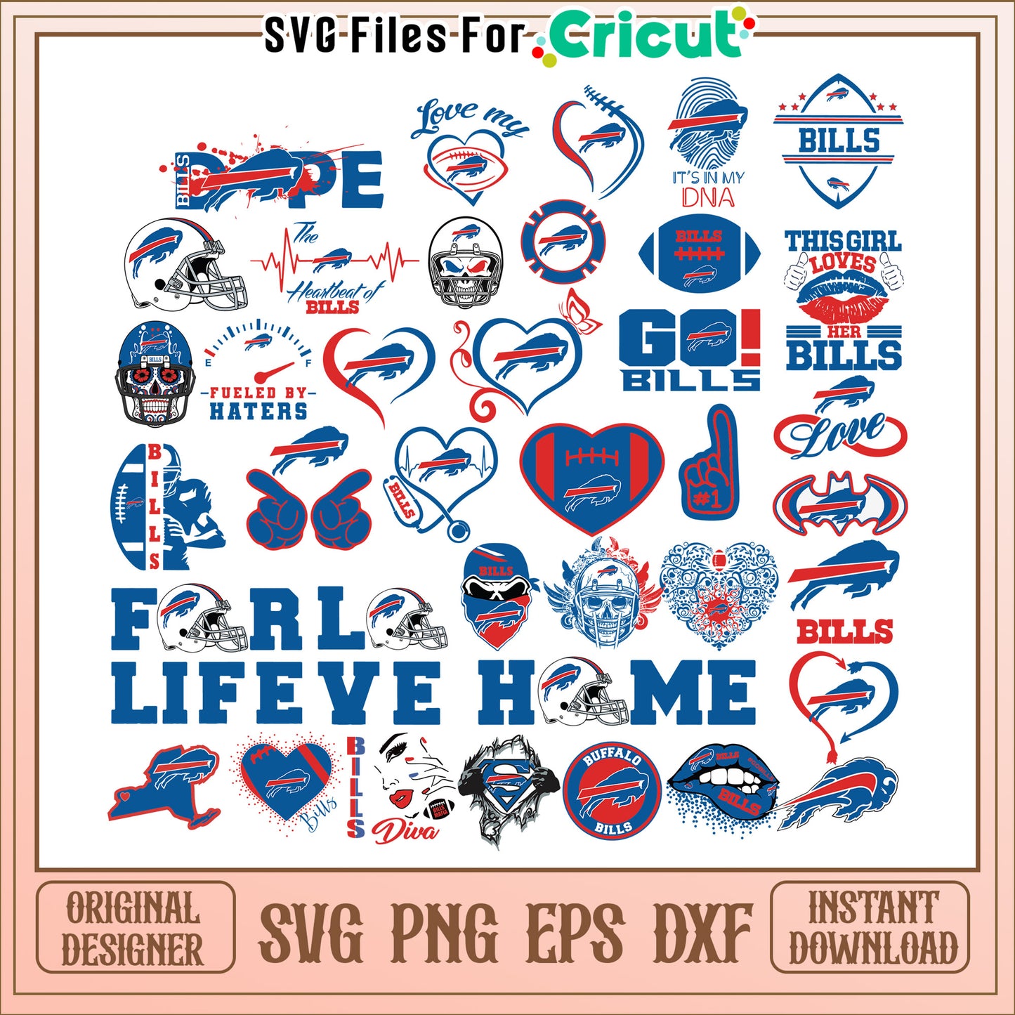 Buffalo Bills SVG Bundle 30+ Designs is part of our NFL collection, perfect for football fans and creative projects! Whether you're crafting game day apparel, customizing mugs, or designing home decor, our high-quality SVG files will bring your favorite team to life. Featuring team logos, mascots, and football-inspired designs, these files are ideal for Cricut, Silhouette, and other cutting machines. Show off your team spirit with stunning graphics that are easy to use for personal and commercial projects. From Super Bowl celebrations to everyday fan paraphernalia.