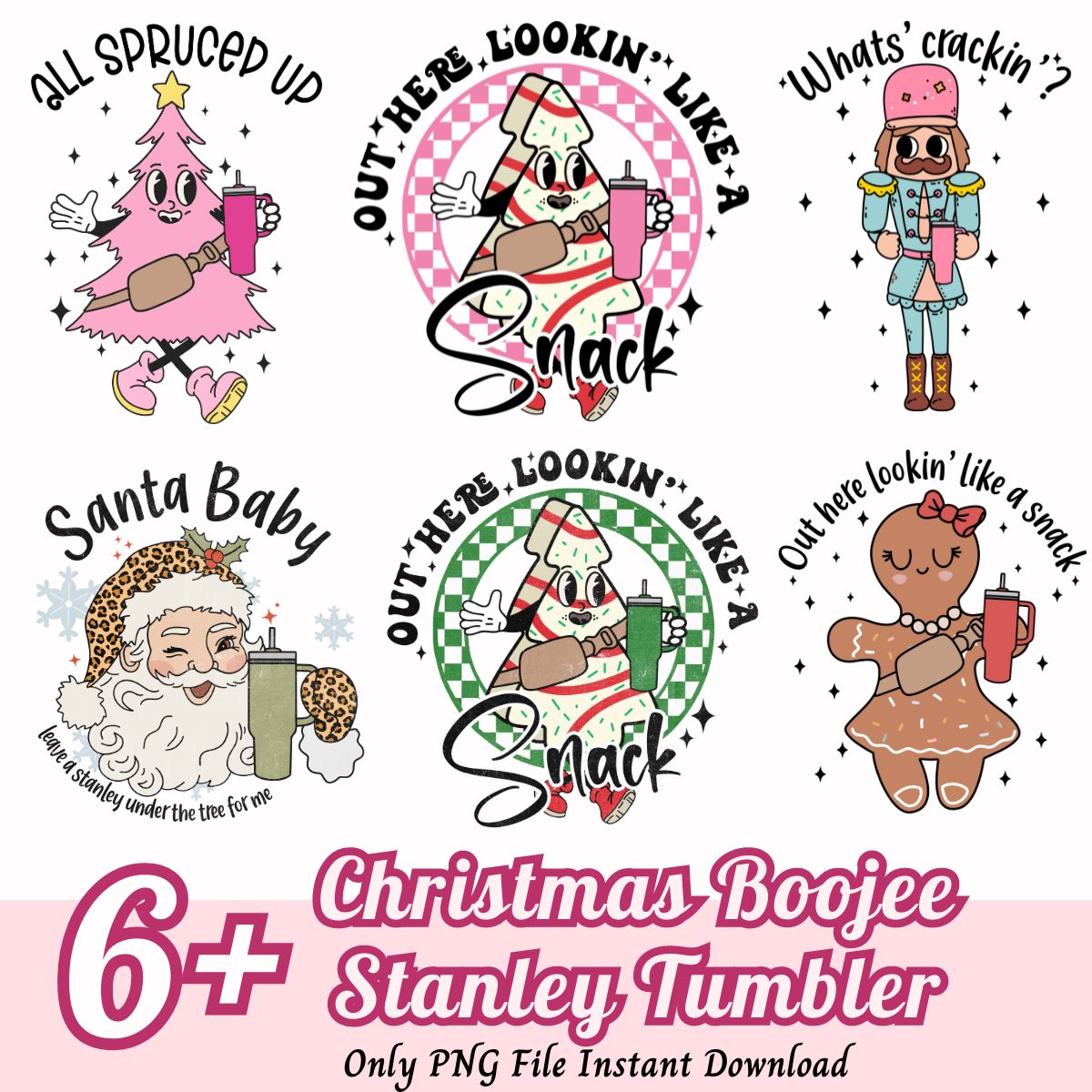 Christmas Boojee Stanley Pink Tumbler Bundle, Christmas Santa PNG tumbler