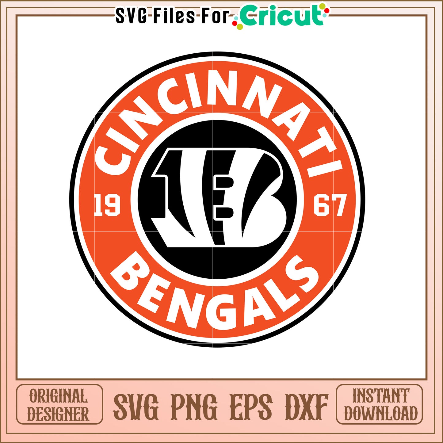 Cincinnati Bengals SVG Design Vintage Style 1967 is part of our NFL collection, perfect for football fans and creative projects! Whether you're crafting game day apparel, customizing mugs, or designing home decor, our high-quality SVG files will bring your favorite team to life. Featuring team logos, mascots, and football-inspired designs, these files are ideal for Cricut, Silhouette, and other cutting machines. Show off your team spirit with stunning graphics that are easy to use for personal and commercial projects. From Super Bowl celebrations to everyday fan paraphernalia.