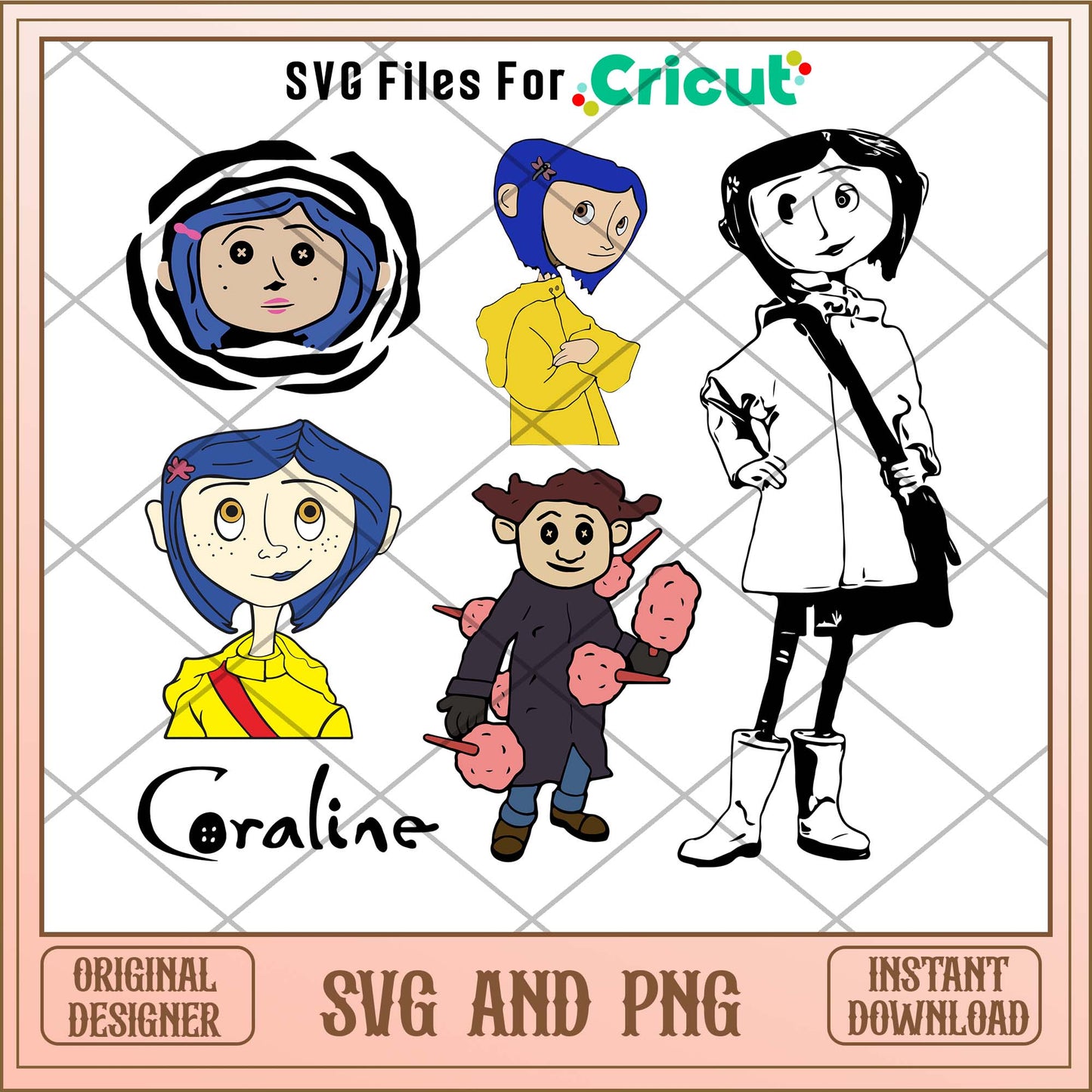 Get ready to add a burst of fun to your birthday celebrations with our Coraline halloween cartoon svg bundle ! This digital download features high-resolution designs ideal for personalizing birthday decorations, apparel, and more.
