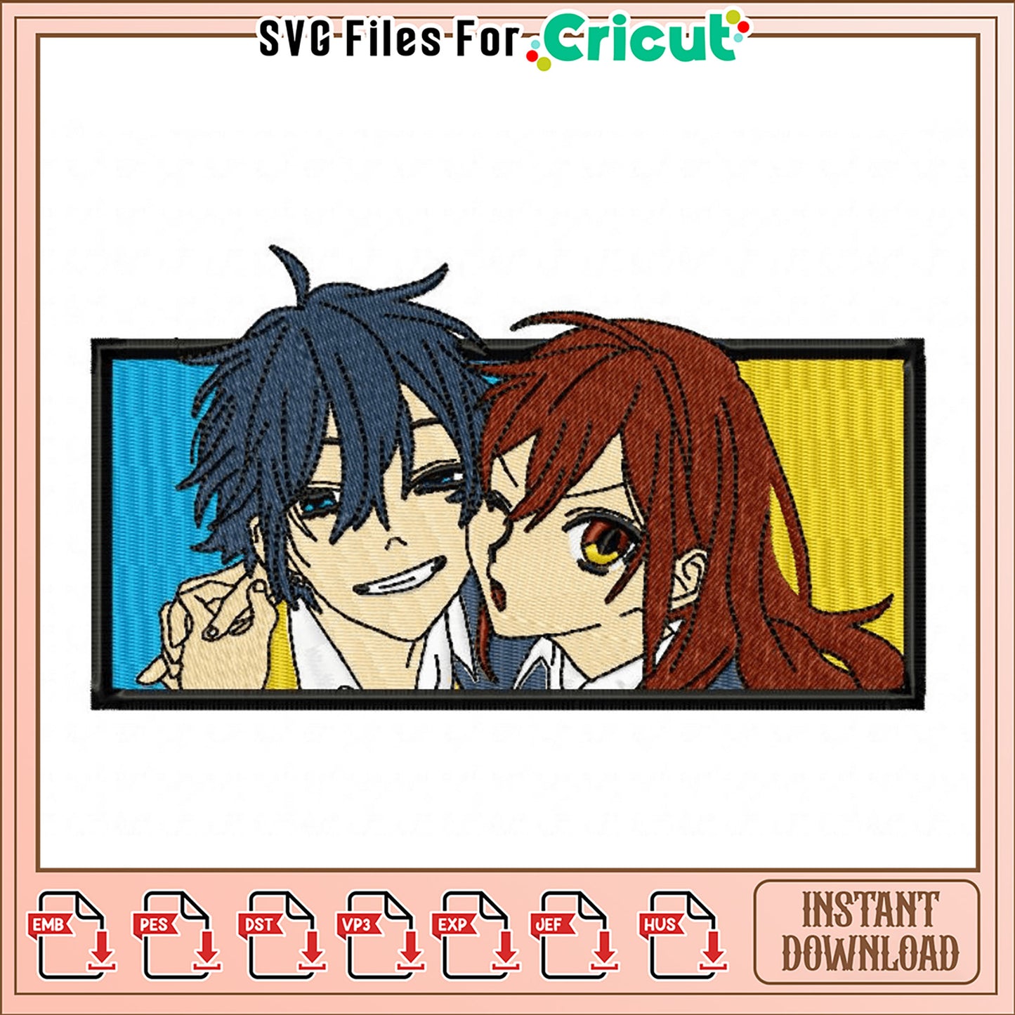 Cute Anime Couple Embroidery Design Instant Download