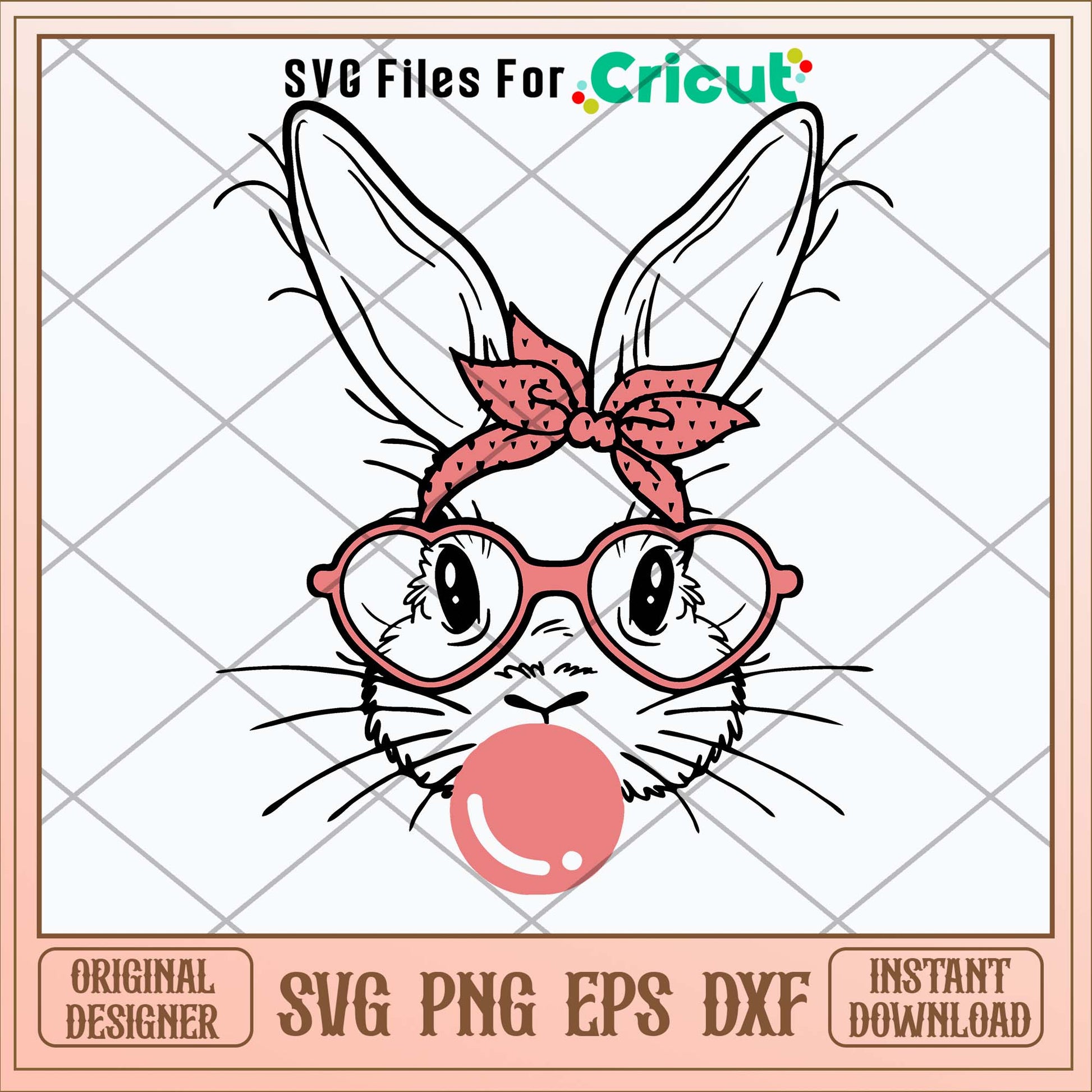 Cute Bunny Rabbit With Bandana Glasses Bubblegum Svg-Svgfilesforcricut