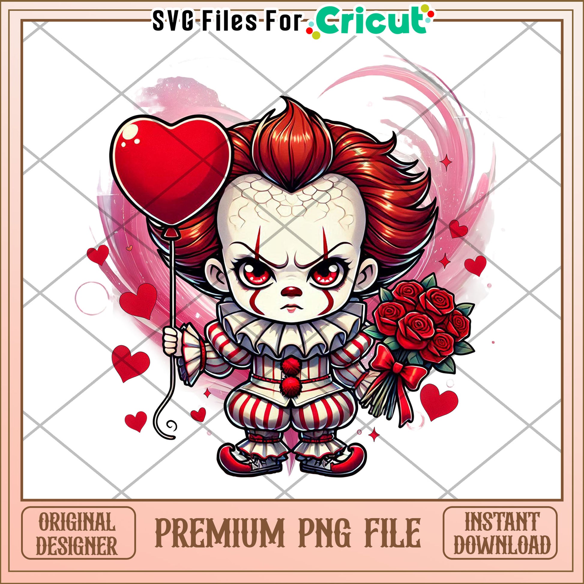 Cute Clown with Heart Balloon and Roses PNG File is a part of our charming Valentine collection. With high-quality designs featuring transparent backgrounds, these files are perfect for all your Valentine's Day projects. From romantic hearts and roses to cute cupids and love quotes, this collection has everything you need to create personalized gifts, cards, t-shirts, mugs, and more. Ideal for digital or print design, these Valentine PNGs add a romantic touch to any project. Whether you're preparing for a special day or creating expressions of love all year round, our diverse designs are here to inspire.