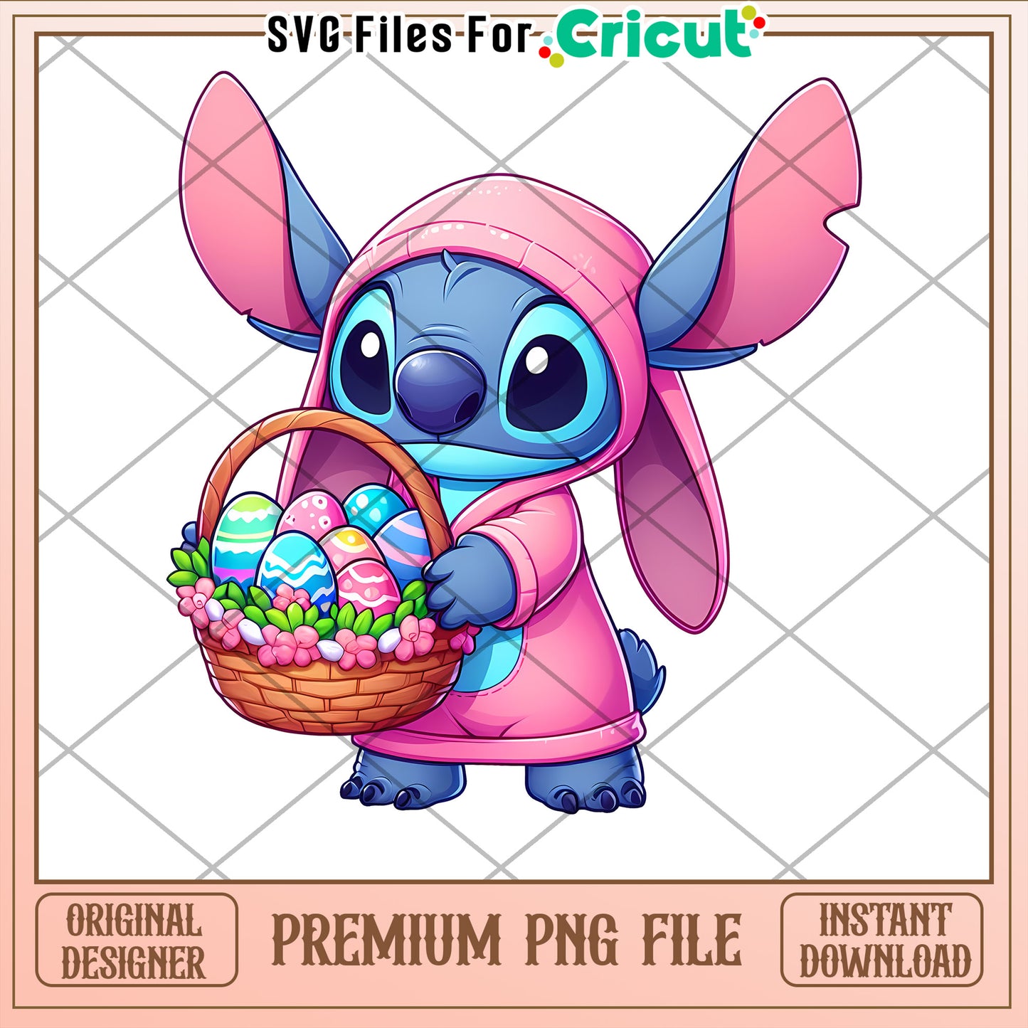 Cute Easter PNG File with Stitch Holding Egg Basket