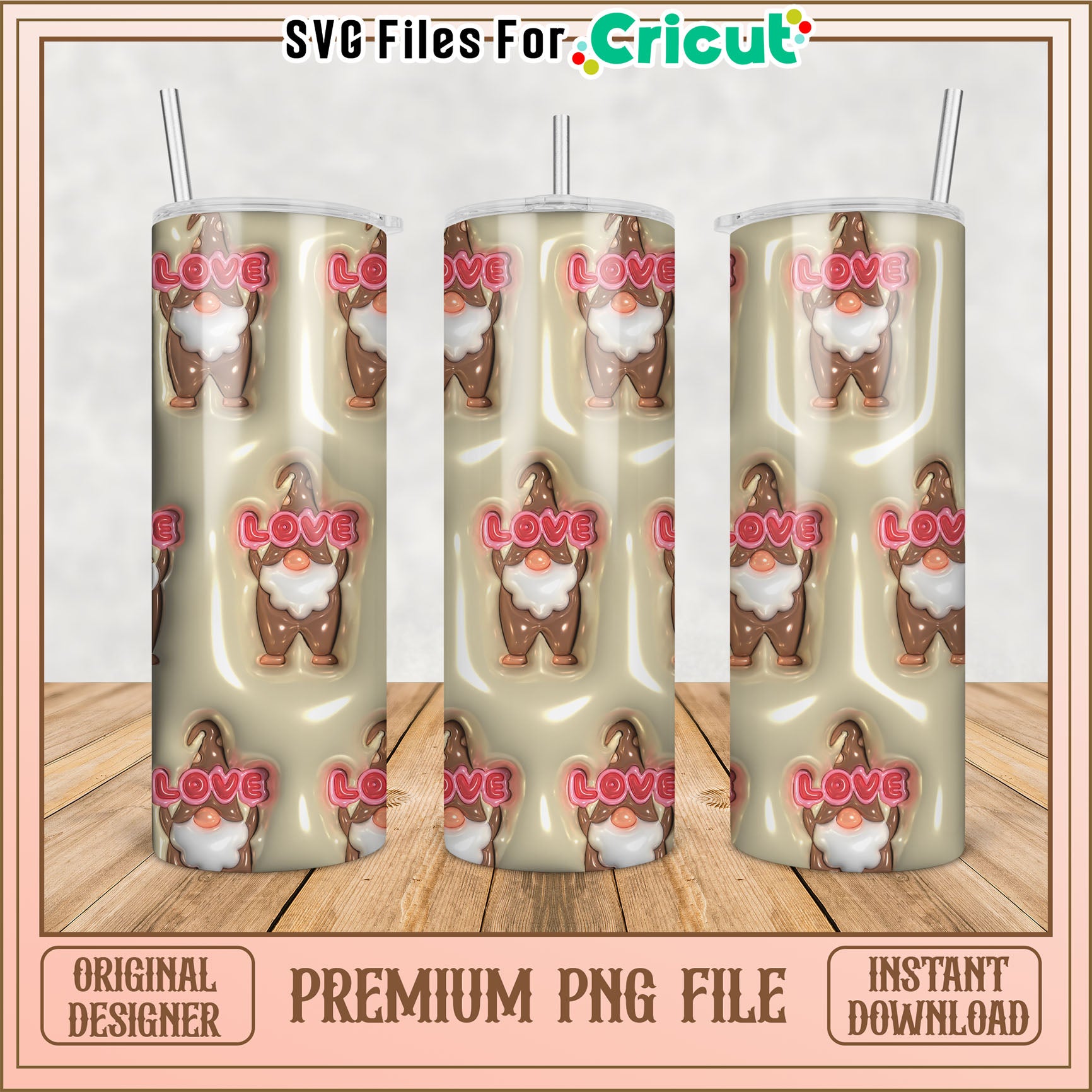 Cute Gnome Love Tumbler PNG Design for Cricut Projects Download