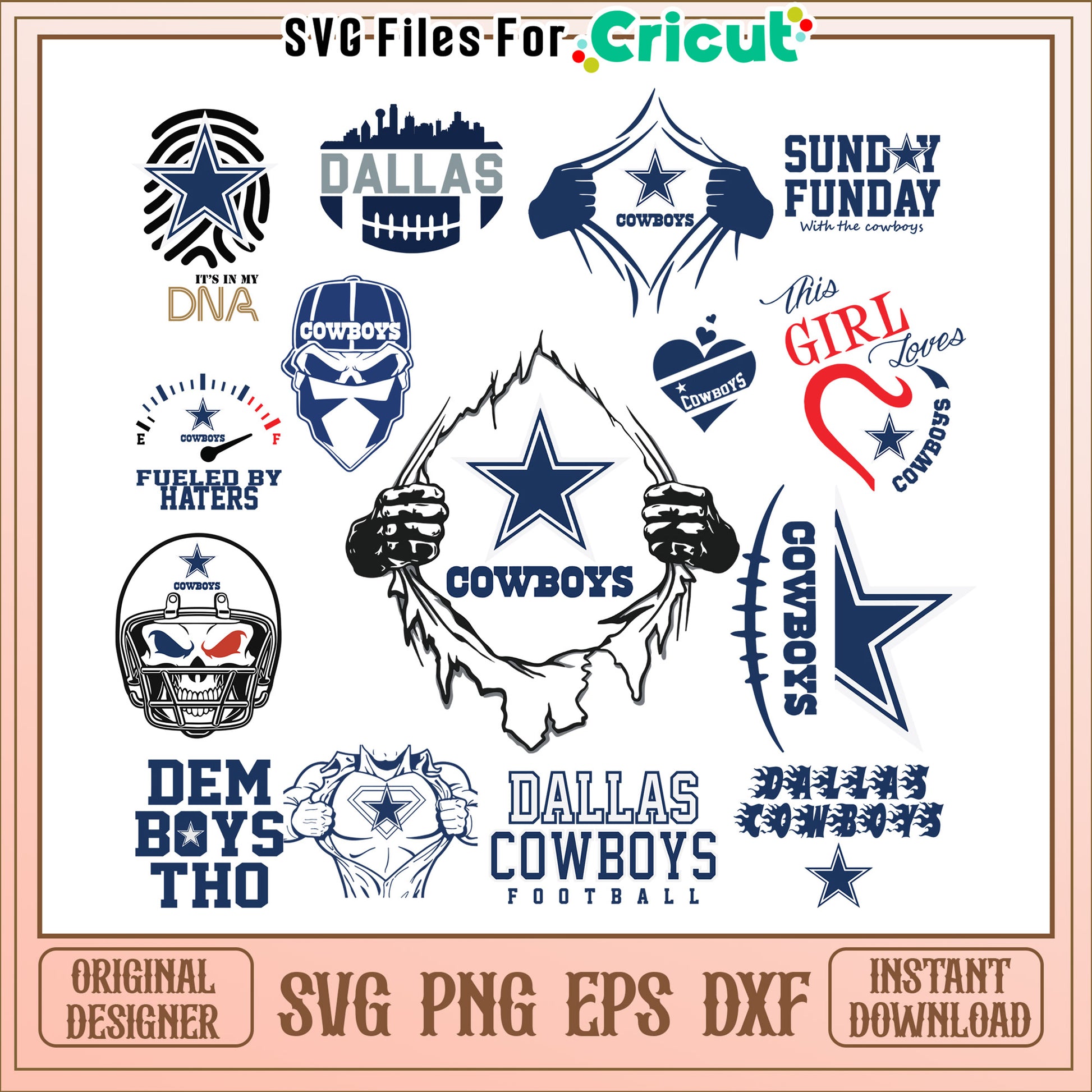 Dallas Cowboys SVG Bundle 10 Designs is part of our NFL collection, perfect for football fans and creative projects! Whether you're crafting game day apparel, customizing mugs, or designing home decor, our high-quality SVG files will bring your favorite team to life. Featuring team logos, mascots, and football-inspired designs, these files are ideal for Cricut, Silhouette, and other cutting machines. Show off your team spirit with stunning graphics that are easy to use for personal and commercial projects. From Super Bowl celebrations to everyday fan paraphernalia.