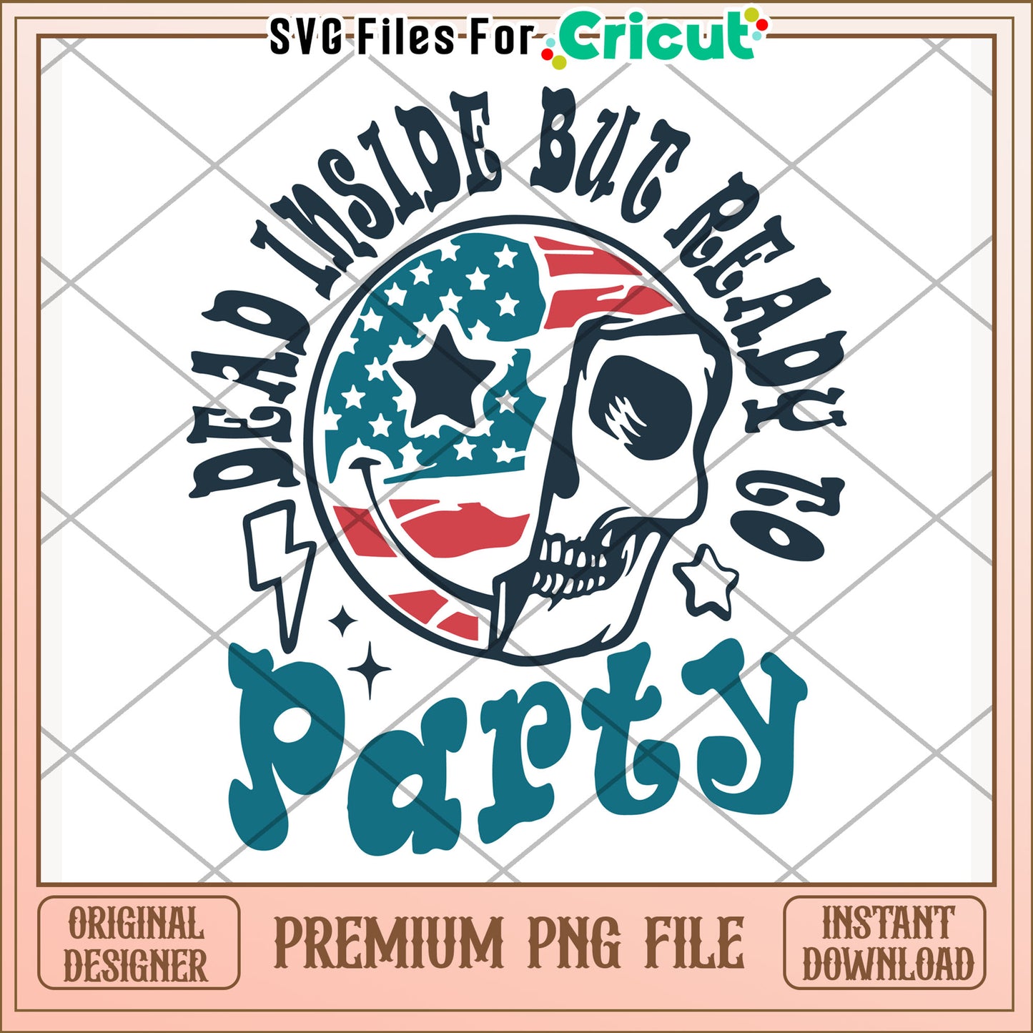 Dead inside but ready to party png is part of our exclusive 4th of July collection, designed for easy DIY projects. Featuring high-resolution, transparent background PNG files, this patriotic set includes fireworks explosions, American flag motifs, stars and stripes motifs, and festive typography. Perfect for creating party invitations, t-shirt prints, banners, decals, and social media graphics, each PNG is meticulously optimized for stunning clarity and vibrant colors. Compatible with all major design software and cutting machines, our 4th of July PNGs simplify your creative workflow.