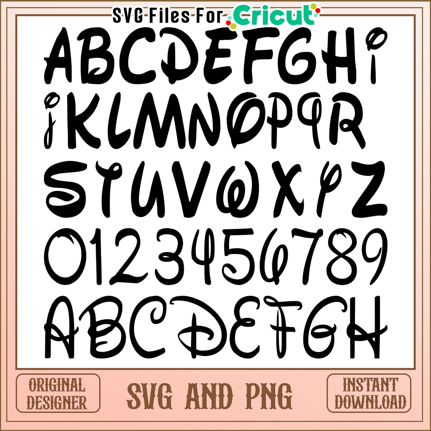 Disney cartoon font design bundle svg is part of our Disney collection and brings the magic of beloved characters to your craft projects with vibrant, resizable images that are ideal for use with Cricut, Silhouette and other cutting machines. Featuring popular Disney characters like Mickey, Minnie and many more, these SVG files allow you to create fun, personalized items from T-shirts and mugs to party decorations and wall art. Perfect for Disney-loving kids and adults alike, these designs offer high-quality cuts for vinyl, paper or fabric projects, ensuring clean lines and professional results. With Disney SVGs, you can add a little bit of magic to any creative endeavor!