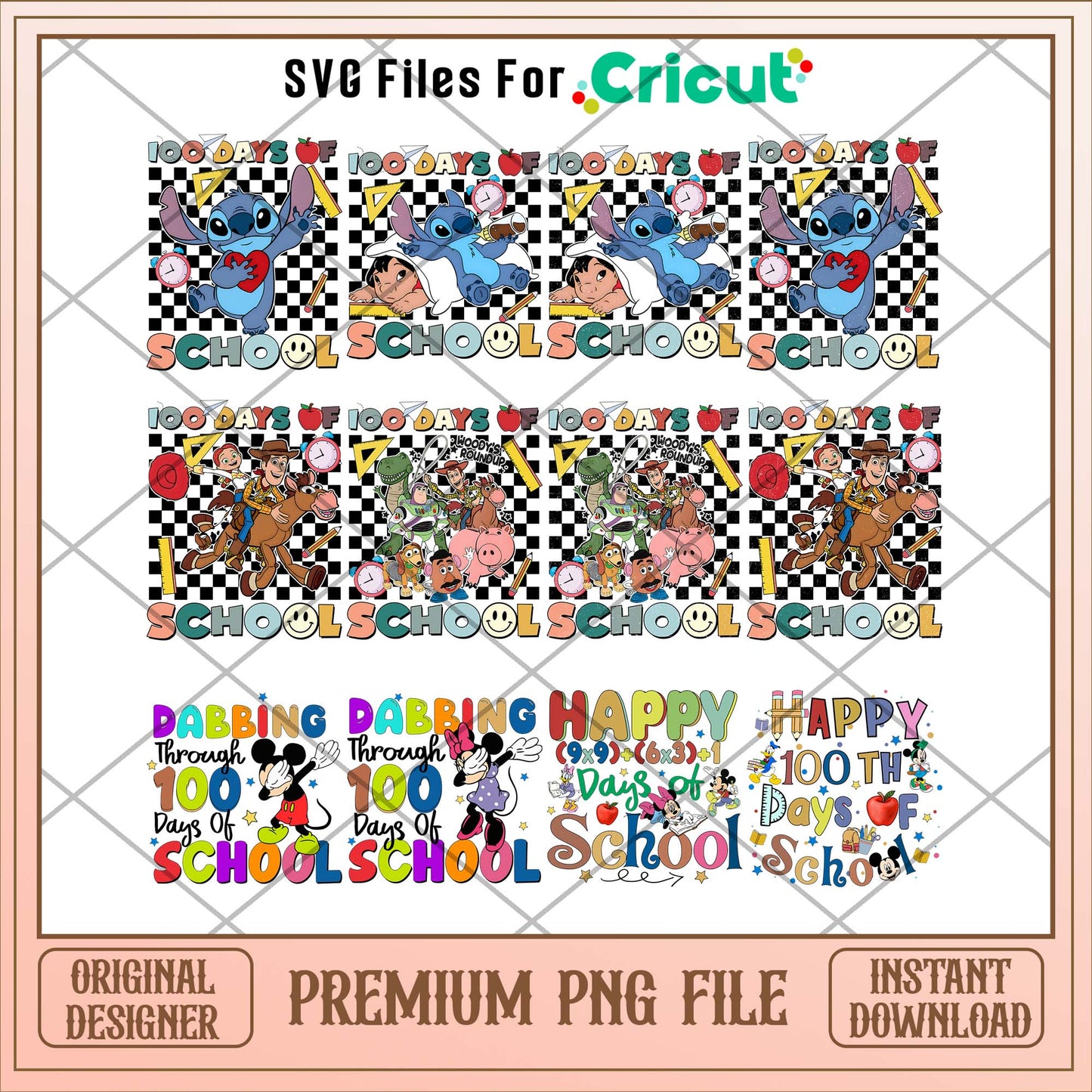 Celebrate Your Special Day with Disney characters 100 day of school PNG bundle