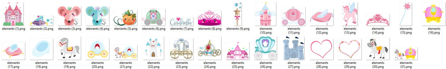 Celebrate with Disney Cinderela clipart png Bundle! This collection features high-resolution designs perfect for personalizing birthday decorations, apparel, and more.