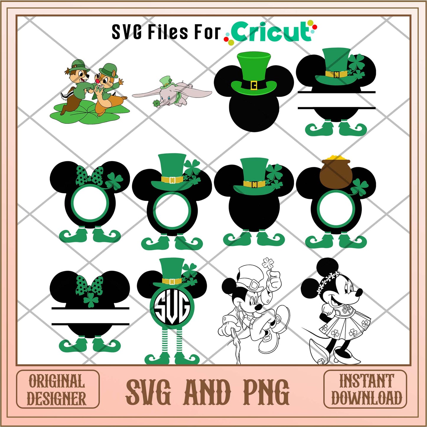 Get ready to add a burst of fun to your birthday celebrations with our Disney friends St.patrick day svg bundle ver 3! This digital download features high-resolution designs ideal for personalizing birthday decorations, apparel, and more.
