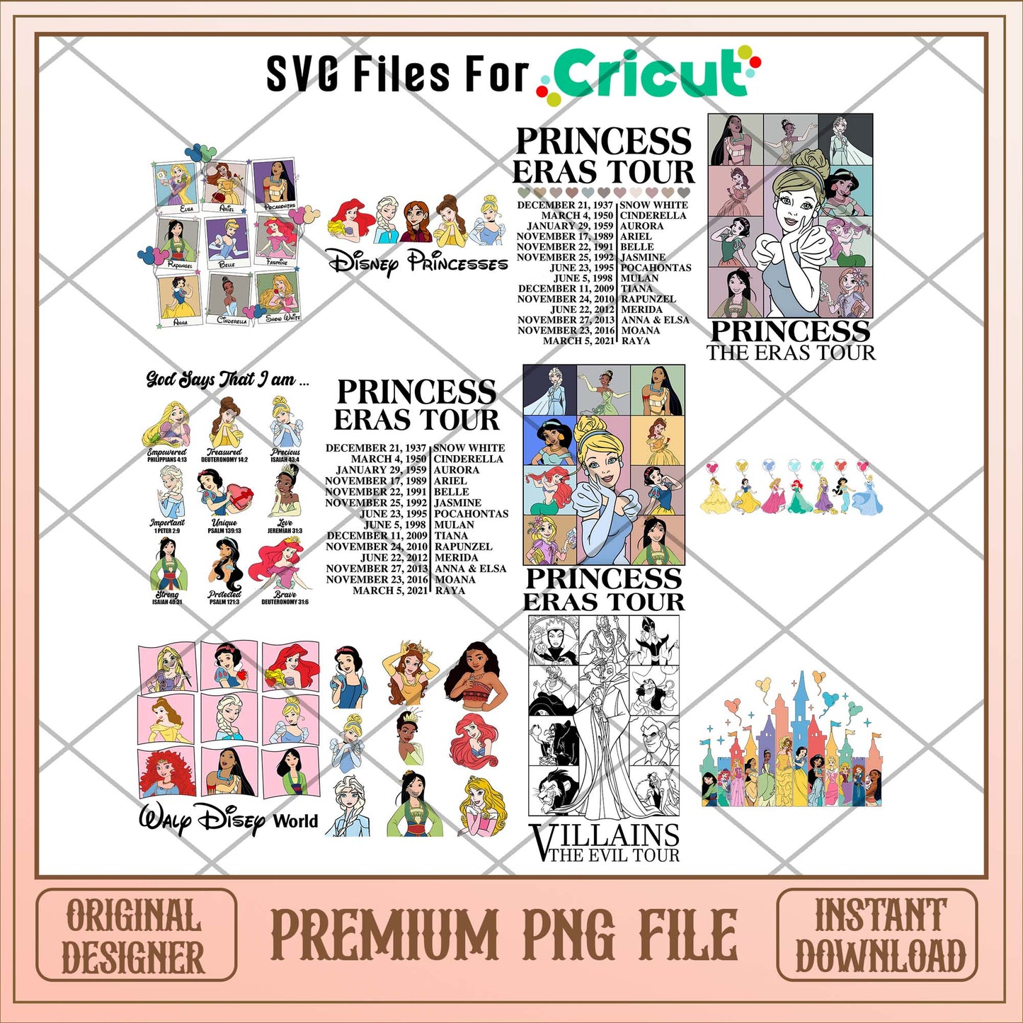 Celebrate Your Special Day with Disney Princess eras art png bundle