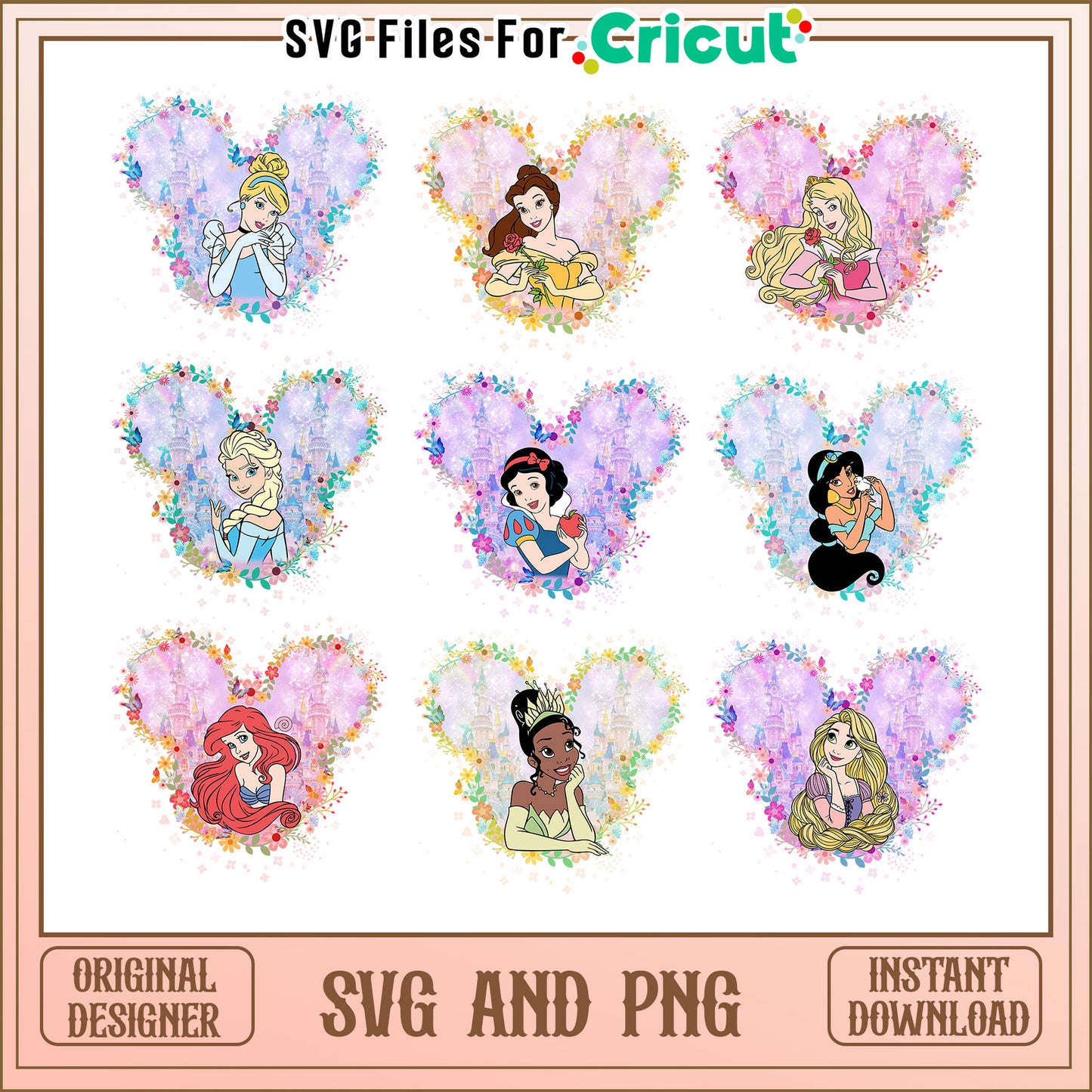 Disney princess mickey head bundle svg, disney princess svg, castle svg