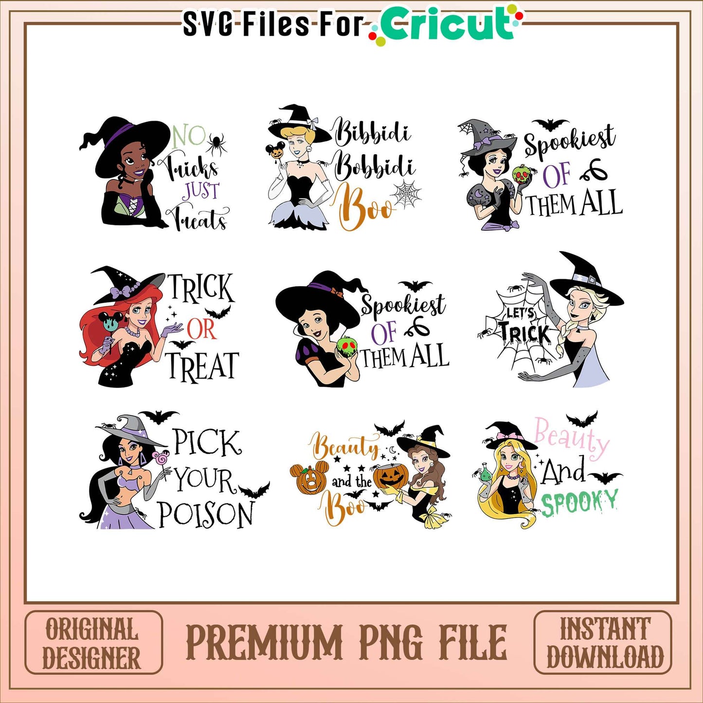 Disney princess trick or treat halloween bundle png, Disney princess png