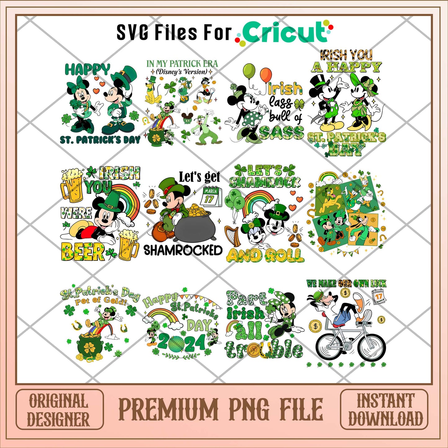 Get ready to add a burst of fun to your birthday celebrations with our Disney Shamrock St Patrick's Day PNG Bundle! This digital download features high-resolution designs ideal for personalizing birthday decorations, apparel, and more.