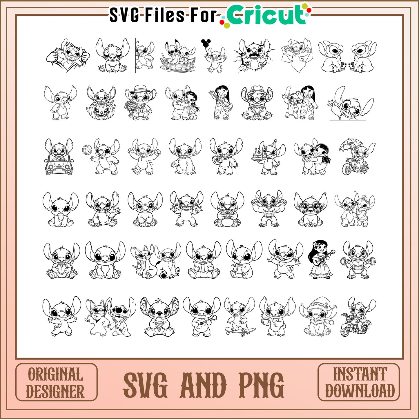 Disney stitch and Lilo black white bundle svg is part of our Disney collection and brings the magic of beloved characters to your craft projects with vibrant, resizable images that are ideal for use with Cricut, Silhouette and other cutting machines. Featuring popular Disney characters like Mickey, Minnie and many more, these SVG files allow you to create fun, personalized items from T-shirts and mugs to party decorations and wall art. Perfect for Disney-loving kids and adults alike, these designs offer high-quality cuts for vinyl, paper or fabric projects, ensuring clean lines and professional results. With Disney SVGs, you can add a little bit of magic to any creative endeavor!