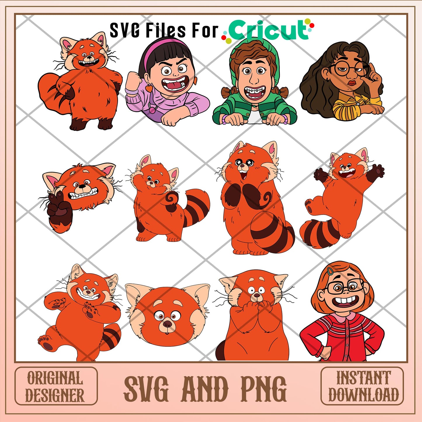 Get ready to add a burst of fun to your birthday celebrations with our Disney Turning red friends head symbol svg bundle ! This digital download features high-resolution designs ideal for personalizing birthday decorations, apparel, and more.