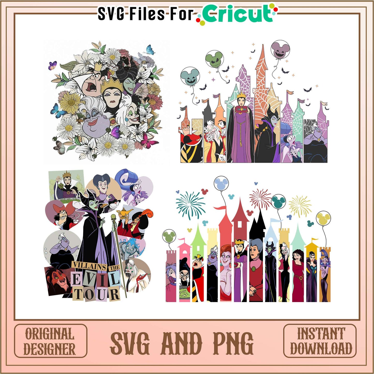 Disney villains castle halloween bundle svg, disney halloween villains svg