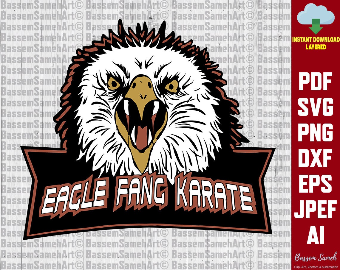 Eagle Fang Karate svg, png, eps, pdf, dxf This is a digital download & no physical item will be sent These vectors can be used for making decals, wall decor, t-shirts, crafts, etc. Perfect for cutting vinyl with your Silhouette, Cricut, or other cutting machines; printing; creating an iron-on transfer; or more! and you can get it black and white only from this listing https://www.etsy.com/listing/936194397/eagle-fang-karate-svg-black-and-white?ref=listings_manager_grid Due to the electronic nature of the product and it's ability to be reproduced, I AM NOT ABLE TO ISSUE A REFUND, however, your satisfaction and happiness is important to me, so, please message me with any question and I will response to your query to the best of my knowledge and AS SOON AS I CAN _____________________________________________________________________ *********************************************************************** If you have any questions, please do not hesitate to contact me.* ***********************************************************************