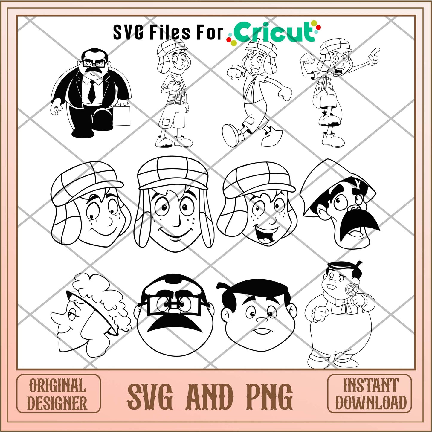 Get ready to add a burst of fun to your birthday celebrations with our El chavo cartoon characters head black and white svg bundle! This digital download features high-resolution designs ideal for personalizing birthday decorations, apparel, and more.
