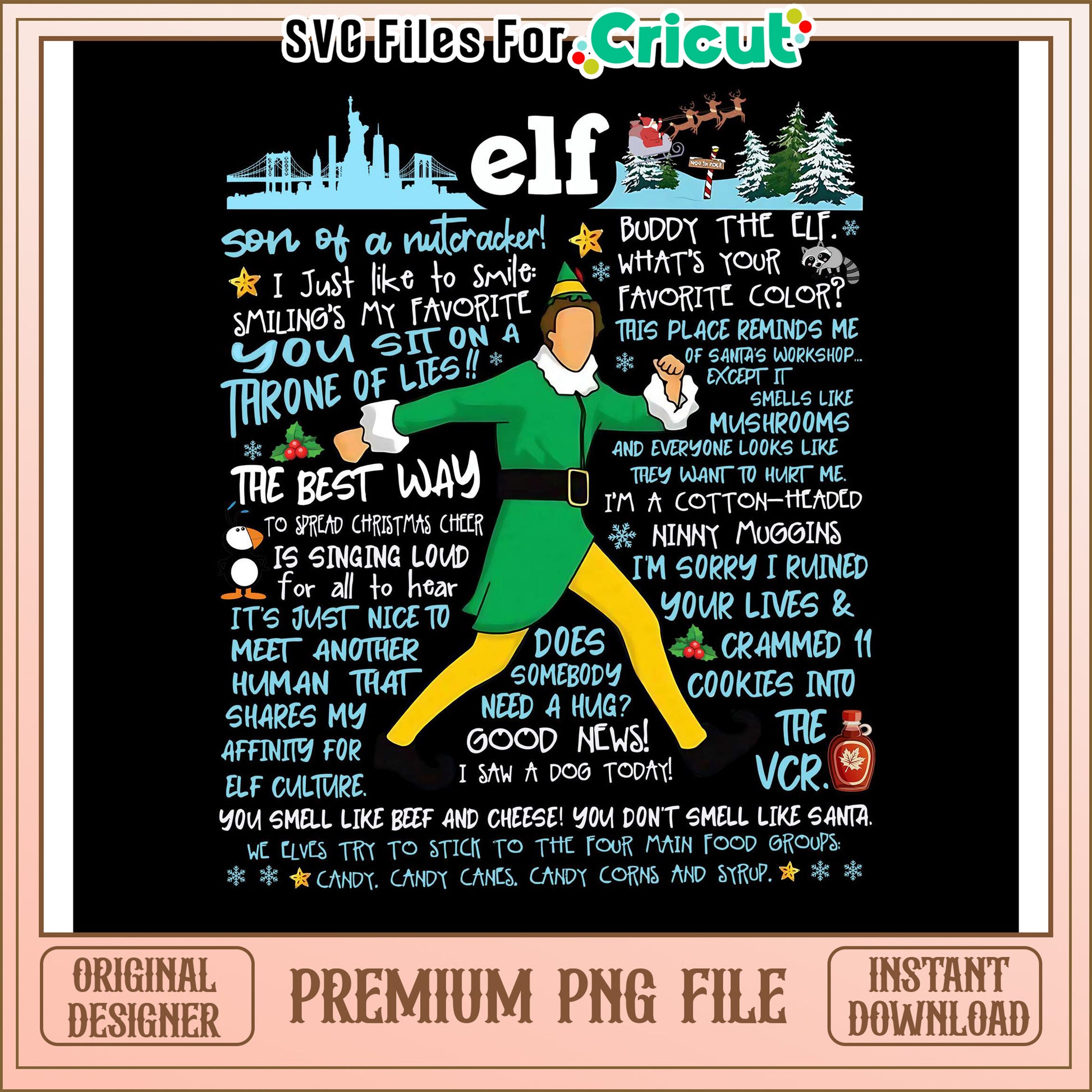 Elf Movie Quote PNG File is part of our Christmas collection! Perfect for DIY projects, holiday apparel, greeting cards, and seasonal decorations, our high-quality Christmas PNG designs add a cheerful touch to any creation. Featuring classic holiday elements like Santa Claus, snowflakes, Christmas trees, and more, these PNG files are perfect for sublimation, printing, and digital crafts. Spread holiday cheer and make your Christmas projects extra special with our fun and festive Christmas PNGs!