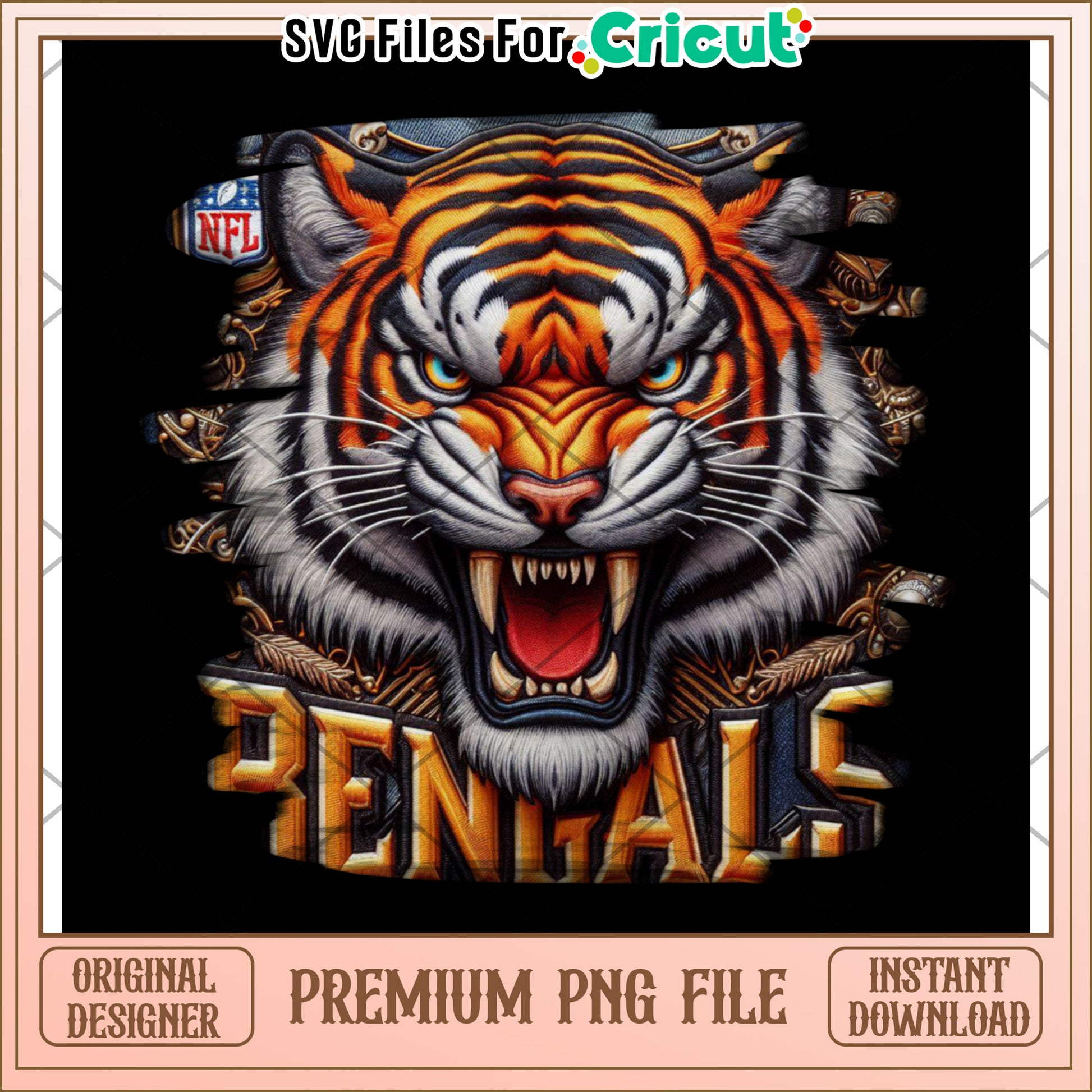 Fierce Bengal Tiger Design for Crafting is a part of our NFL collection and is perfect for fans who want to show off their team pride with high quality graphics that feature transparent backgrounds. From team logos and mascots to player silhouettes and game-inspired icons, these PNG files are great for layering on digital and print projects. Ideal for creating custom apparel, banners, party decorations, and social media graphics, NFL PNGs let you support your favorite team in style. Their transparent backgrounds make them easy to integrate into a variety of projects, whether you're crafting, designing, or adding a unique touch to online content.