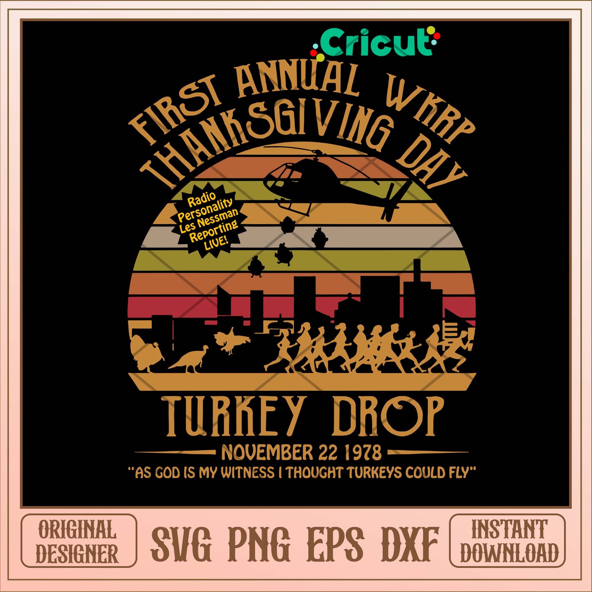 First Annual Wkrp Thanks Giving Day Turkey Drop Svg