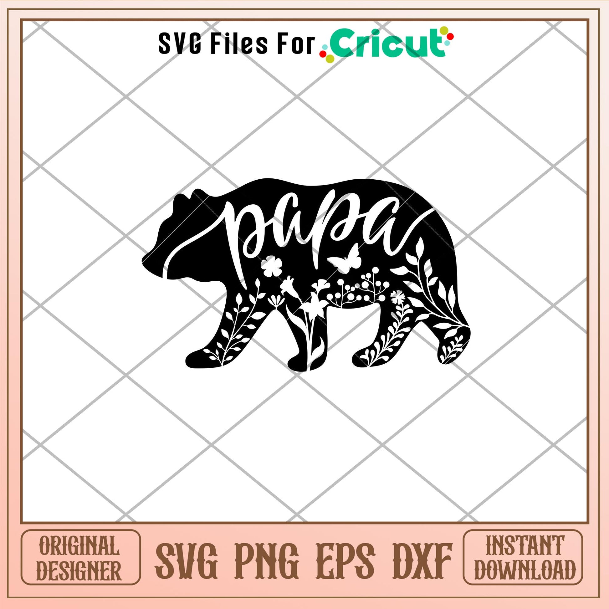 Flora Papa Bear, Floral Papa Bear Svg