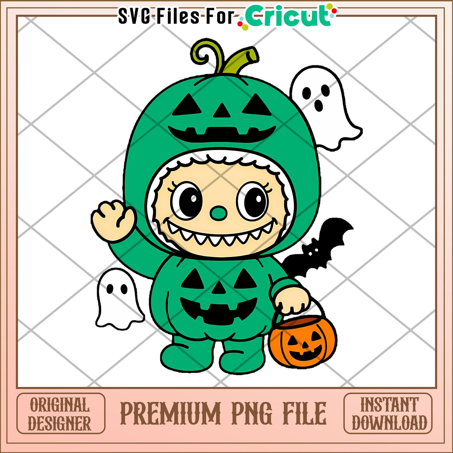 Green labubu pumpkin png, halloween candy png, pop mart labubu dolls png