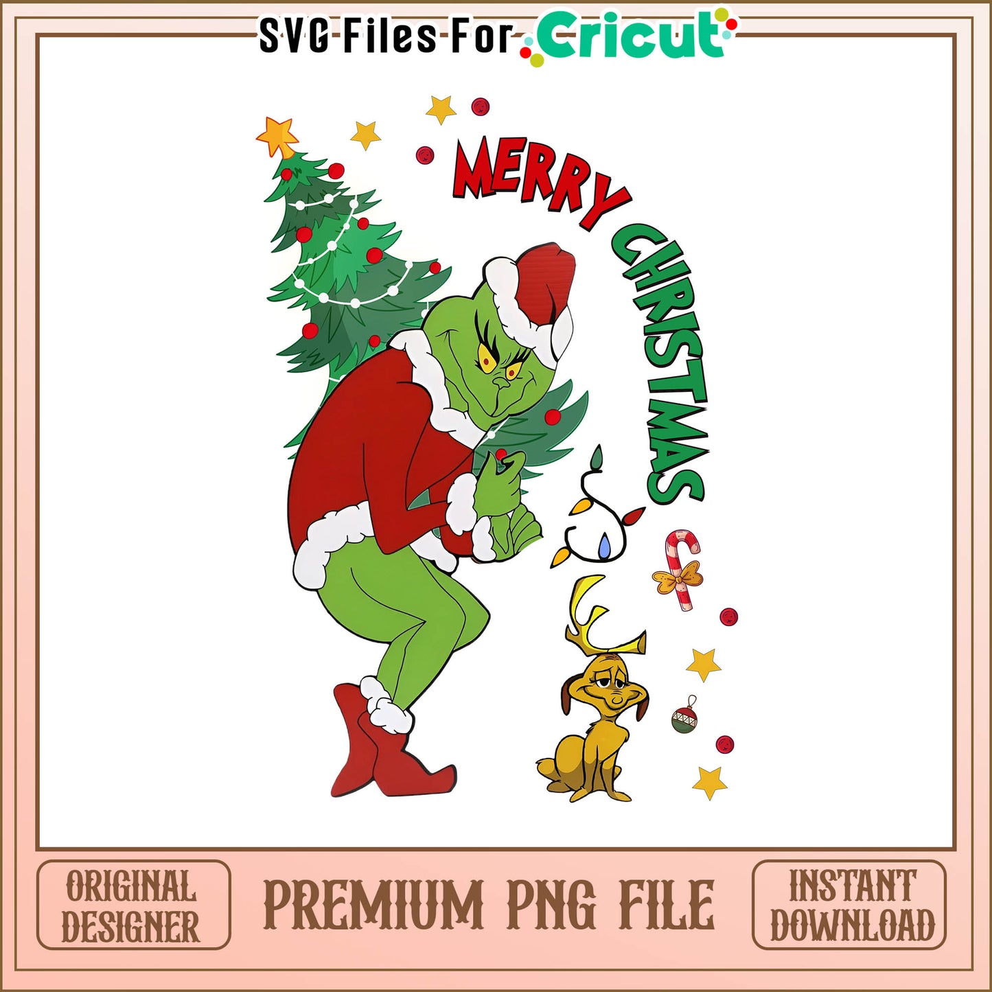 Grinch carry merry christmas tree png, grinch and dog christmas png
