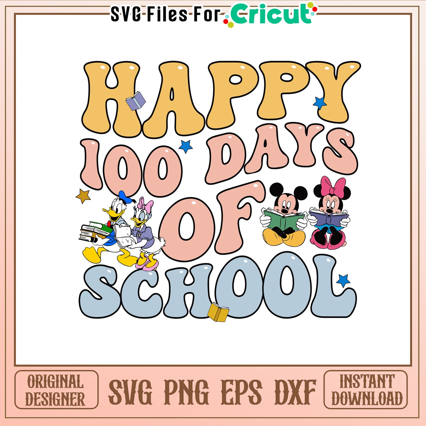Happy 100 days of school svg, mickey friends svg, read book svg