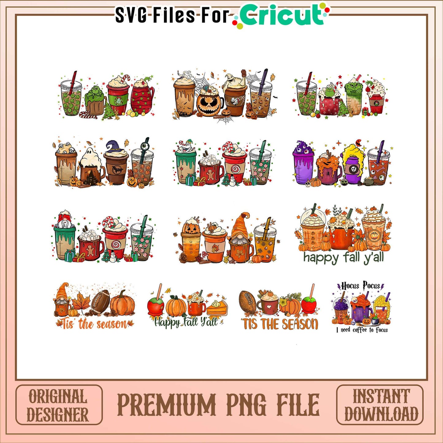 Happy fall y'all coffee halloween bundle png, tis the season png